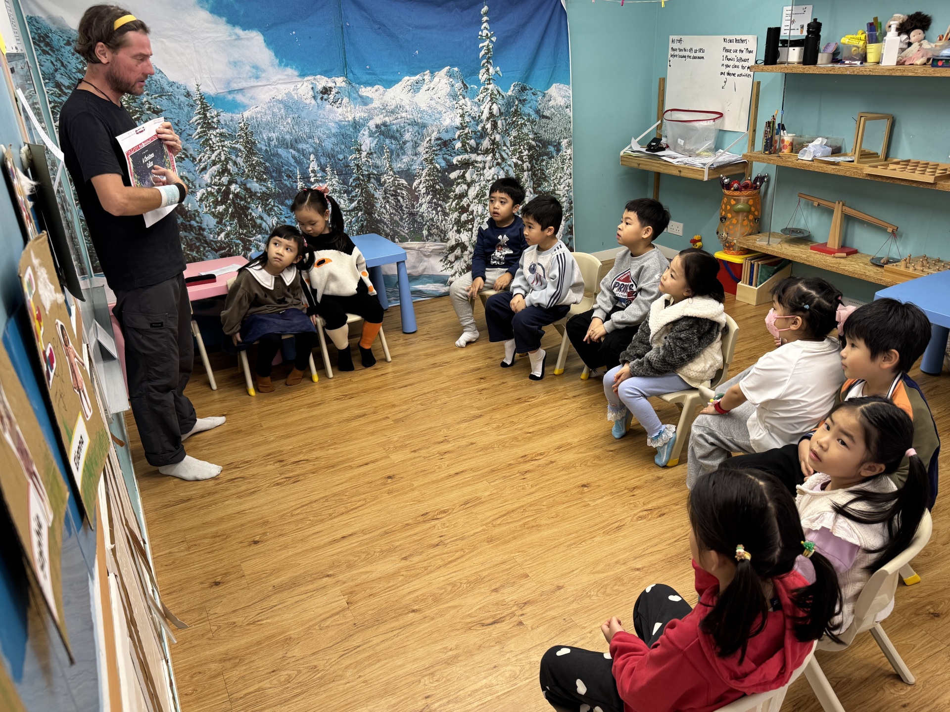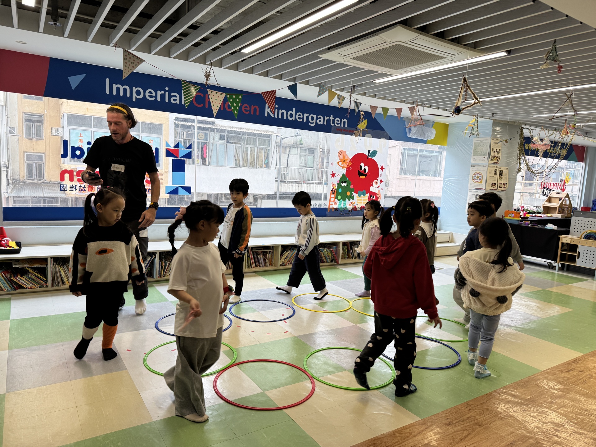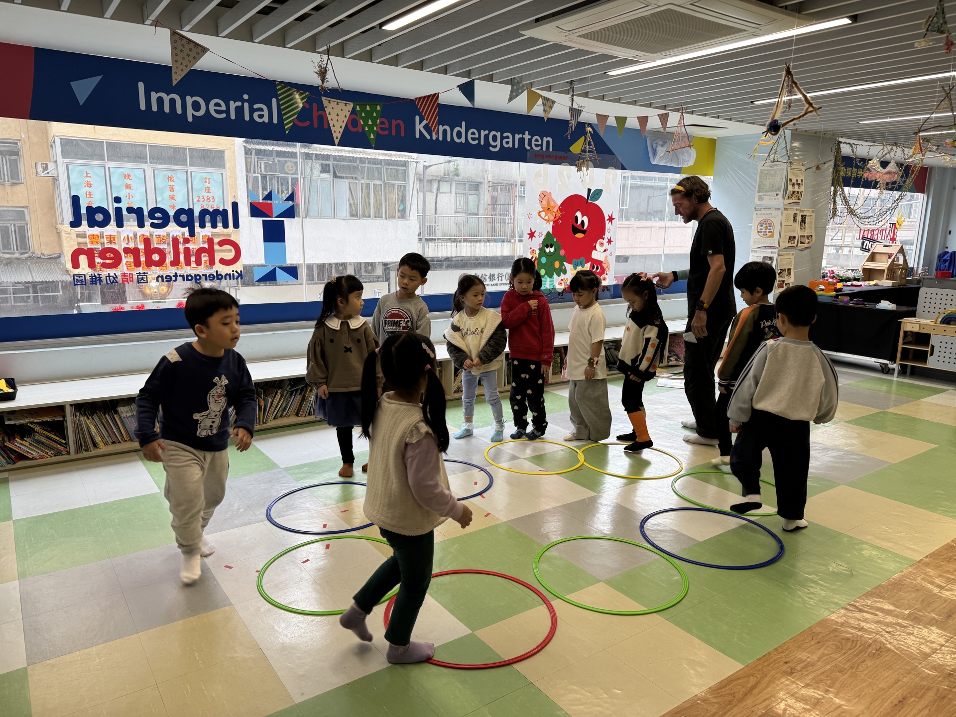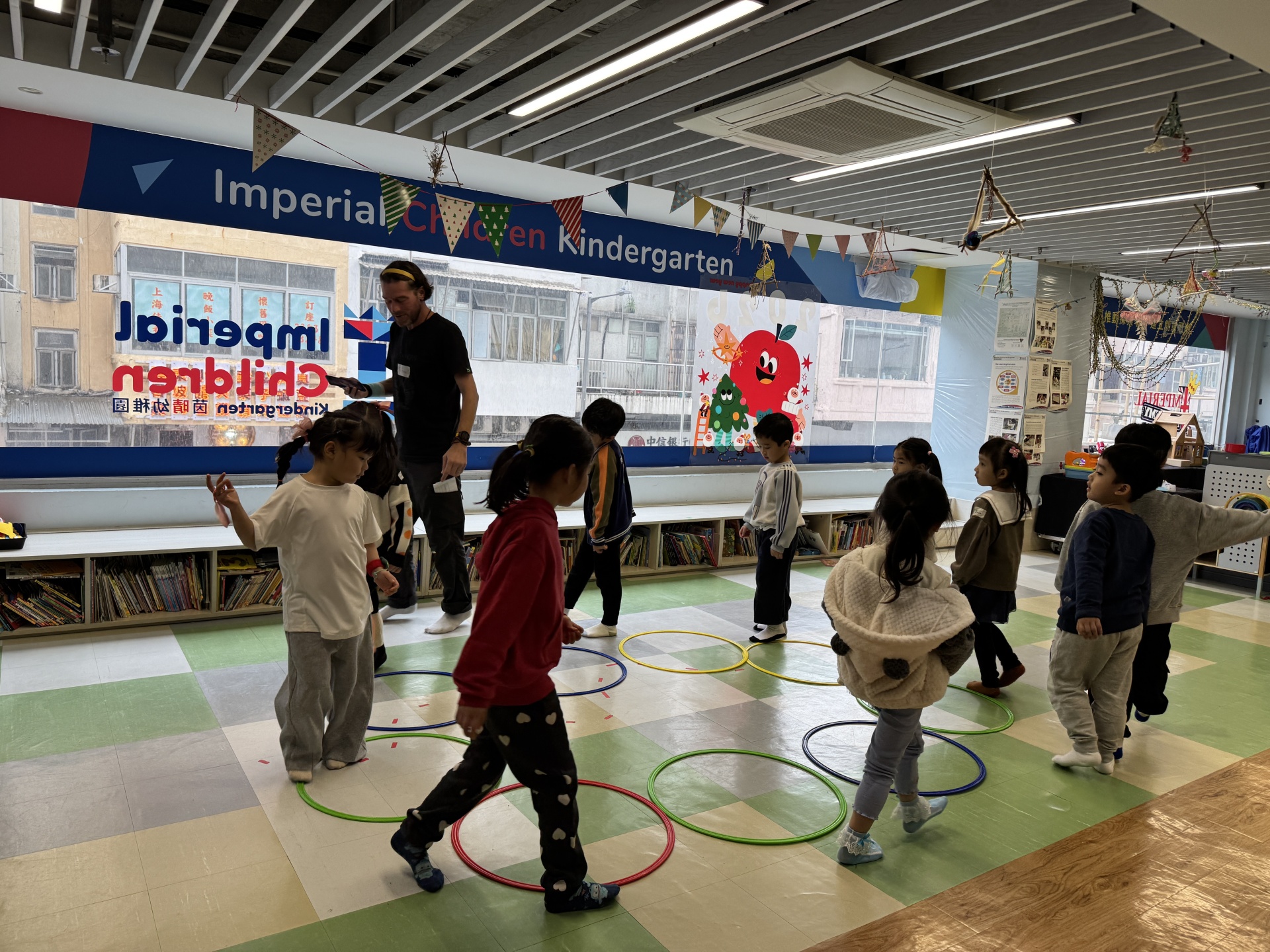 Today we crafted our own Santa Claus with our hands, laughed and ran to the rhythm in a group game of musical hula hoops, and lit up our very own Christmas tree with sparkly decorations.