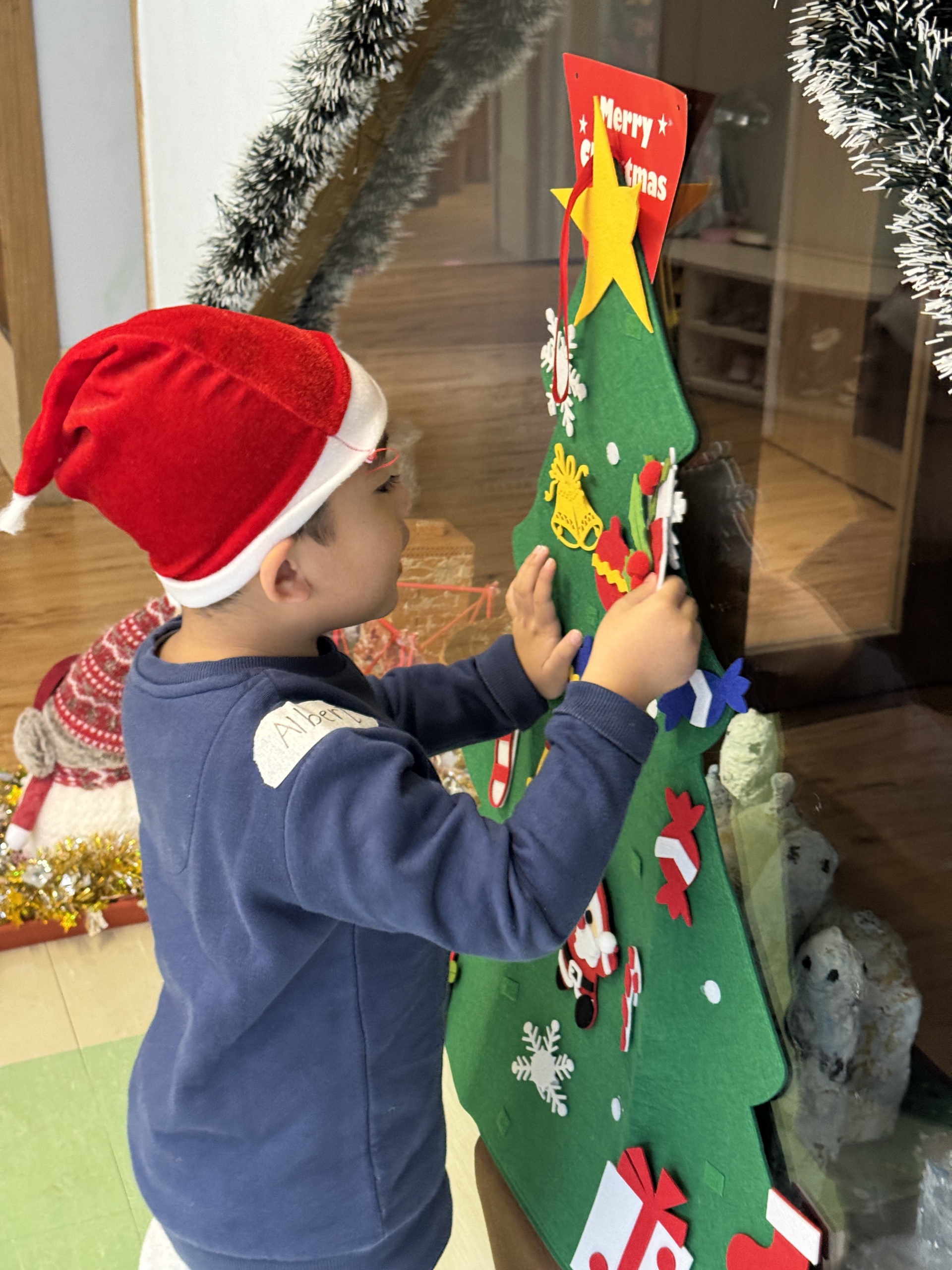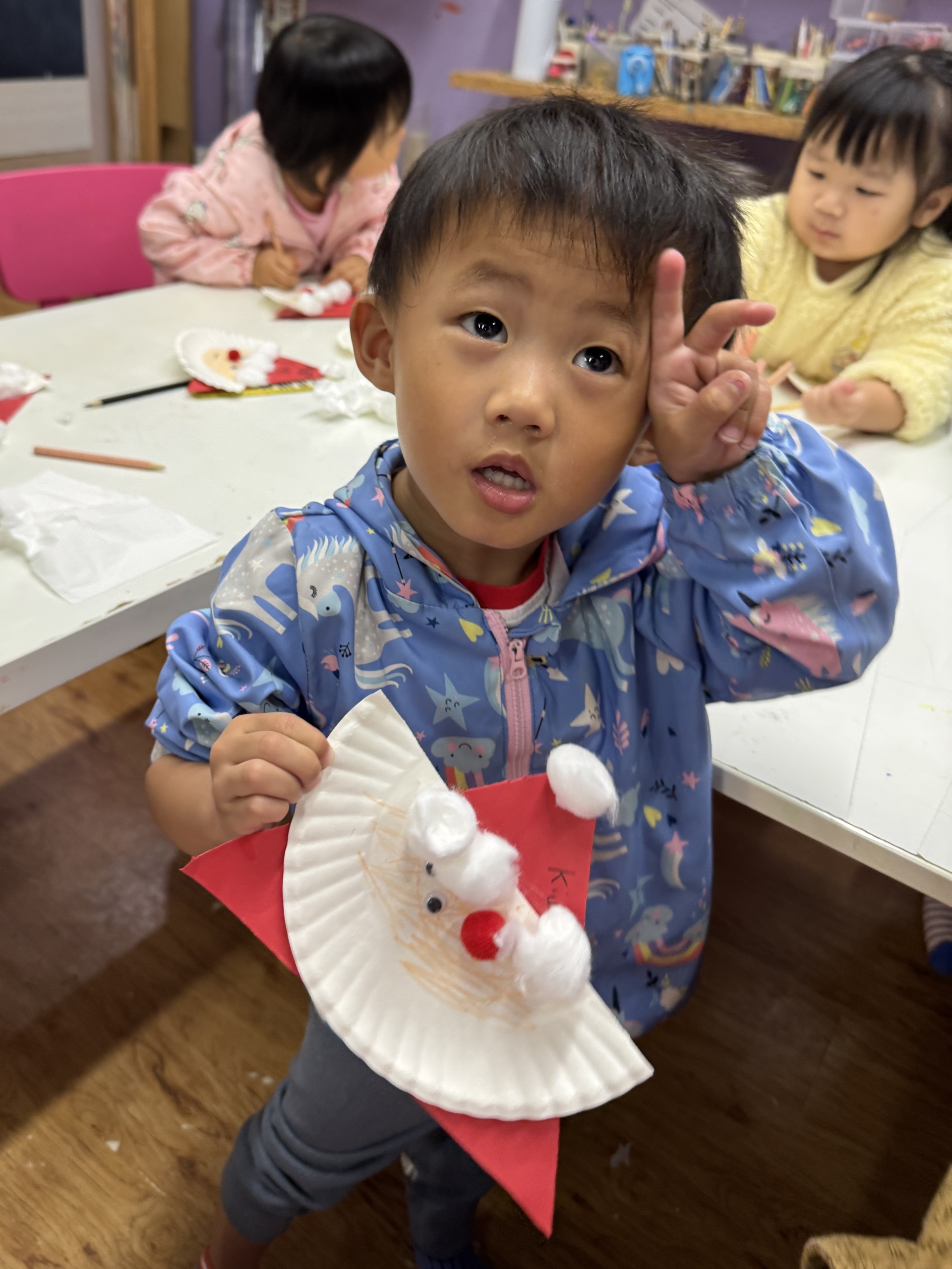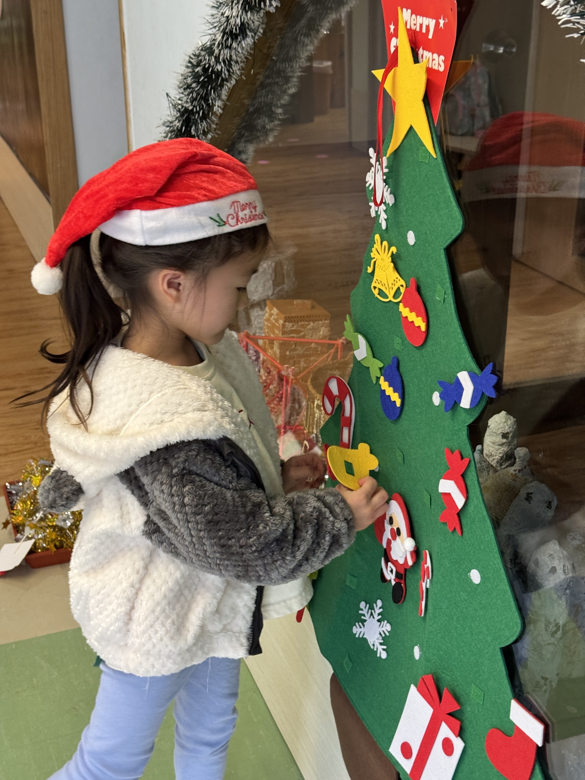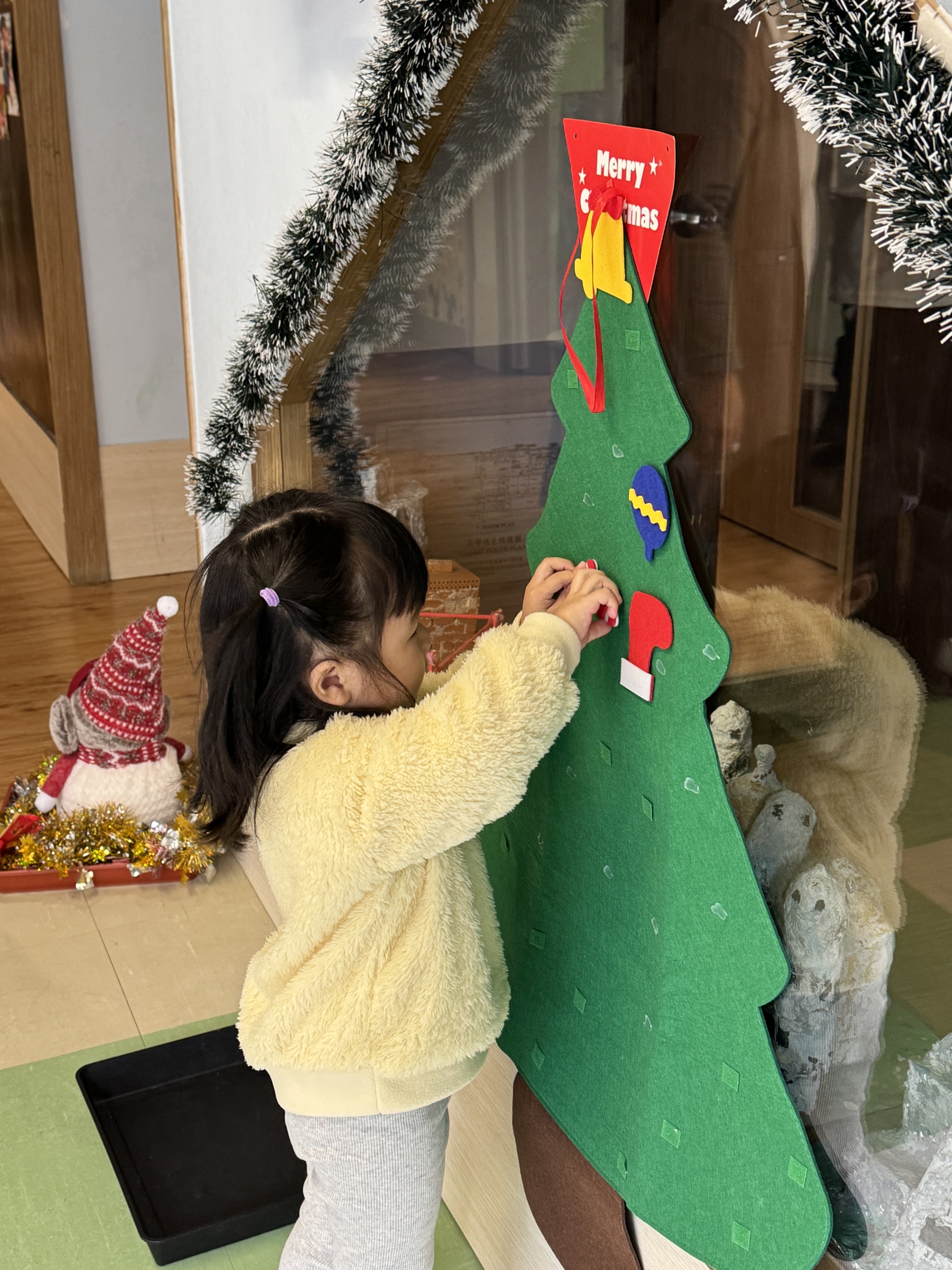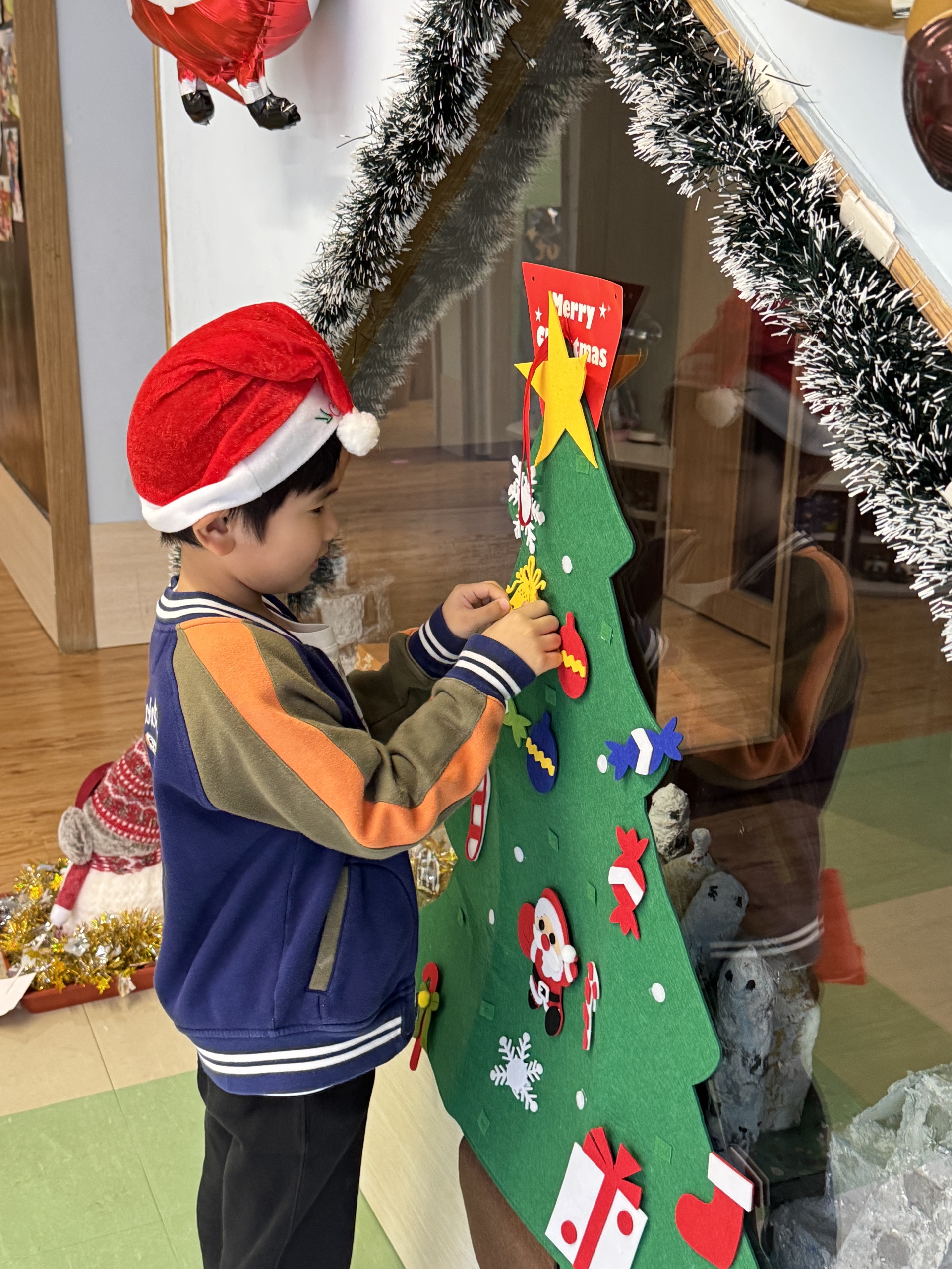 今天我們親手製作了聖誕老人的手工作品,在音樂呼啦圈的團體遊戲中跟著節奏歡笑奔跑,還一起用閃亮的裝飾點亮了屬於我們的聖誕樹。
