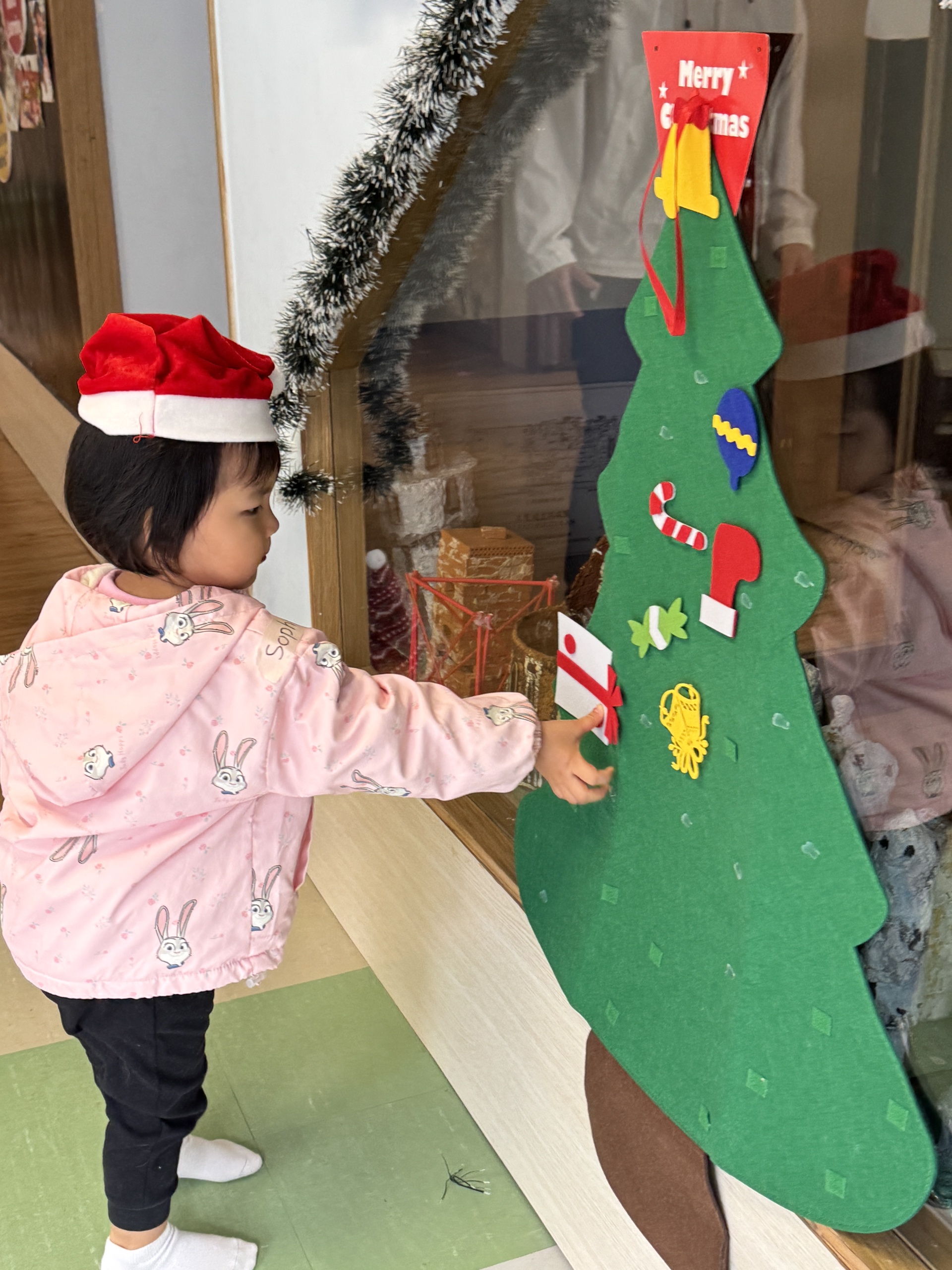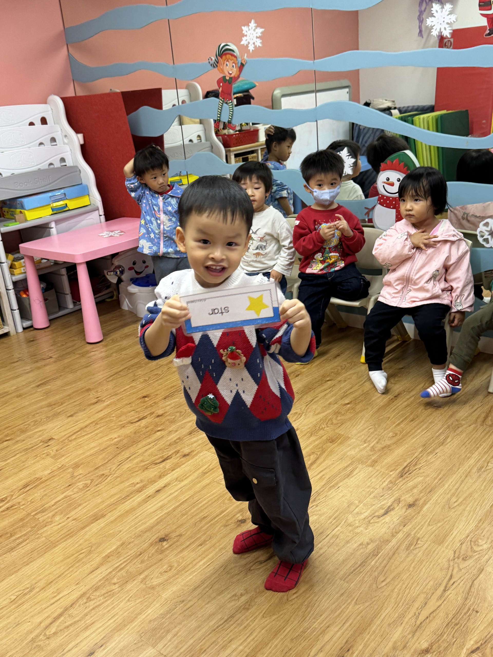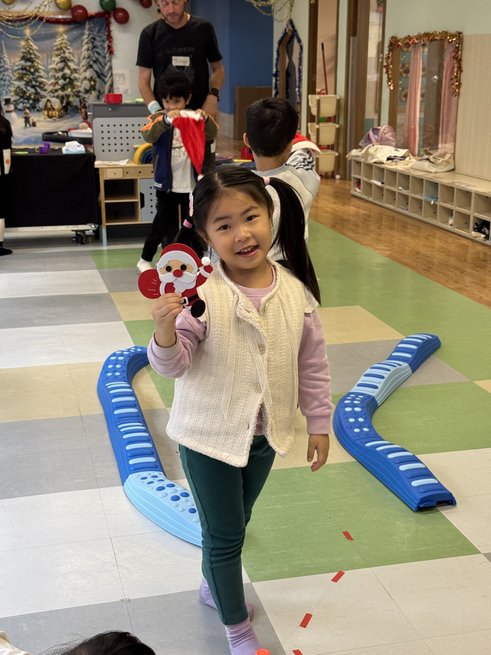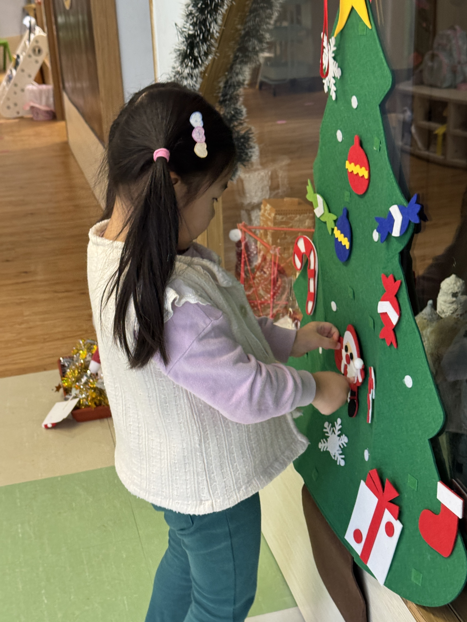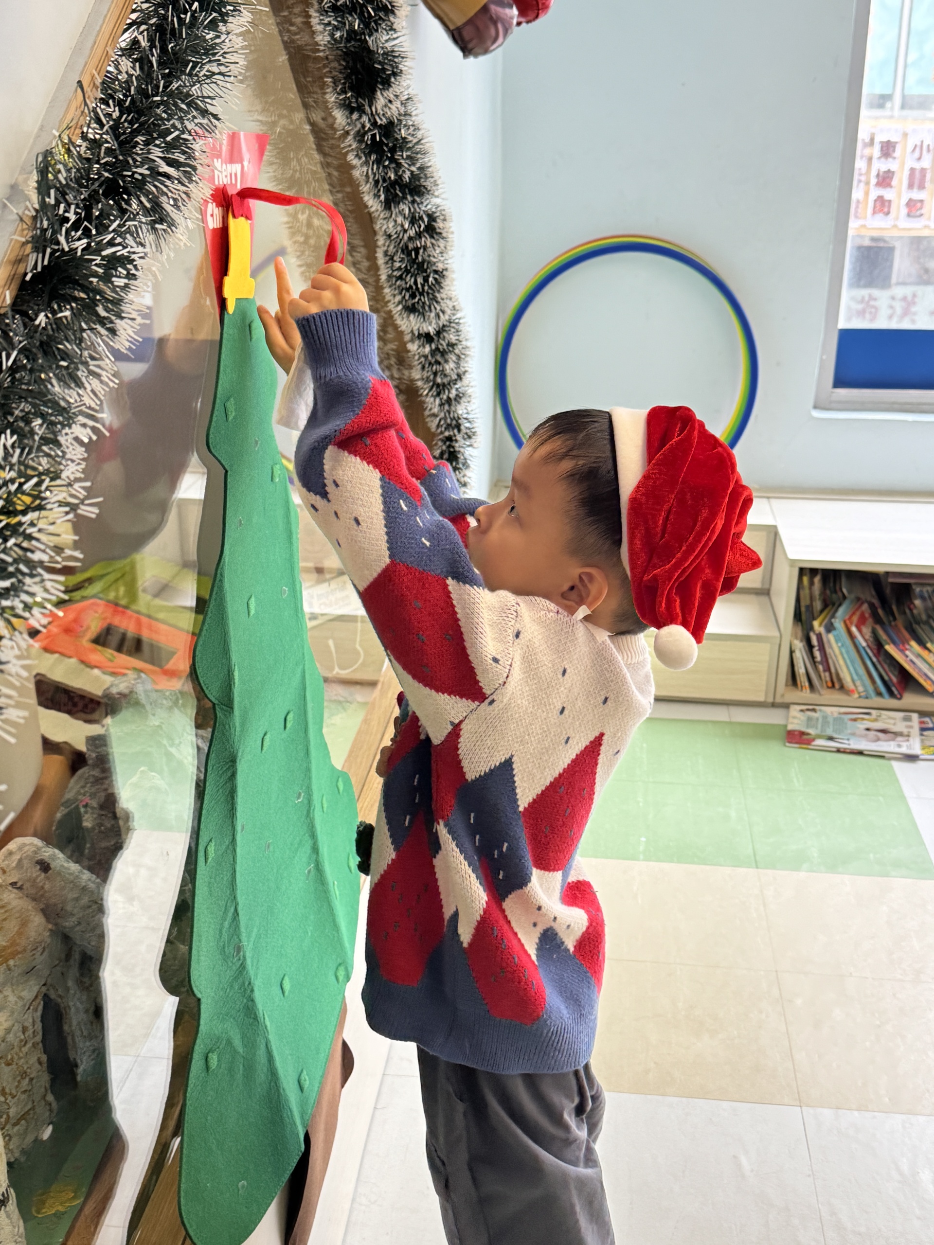今天我們親手製作了聖誕老人的手工作品,在音樂呼啦圈的團體遊戲中跟著節奏歡笑奔跑,還一起用閃亮的裝飾點亮了屬於我們的聖誕樹。
