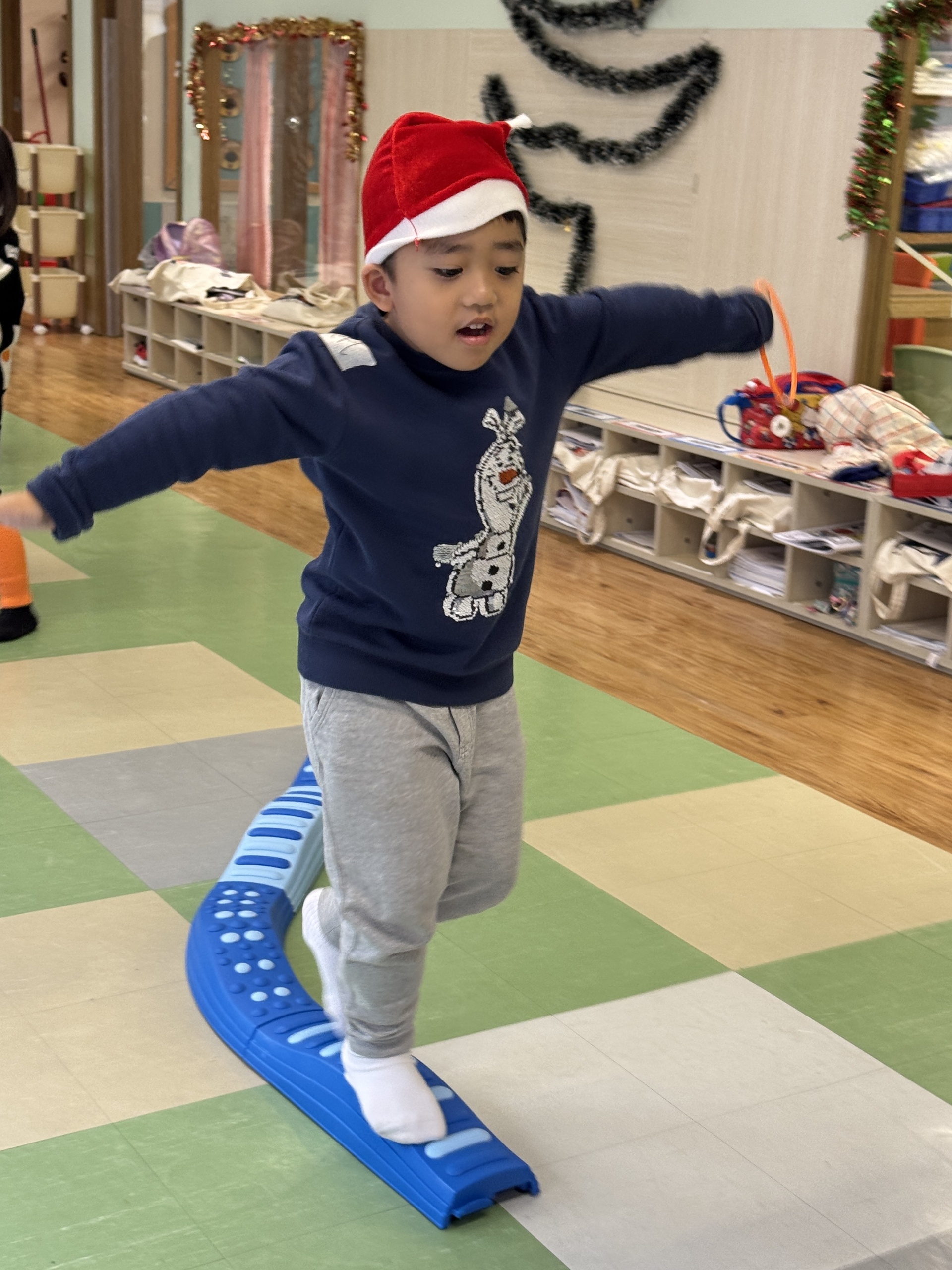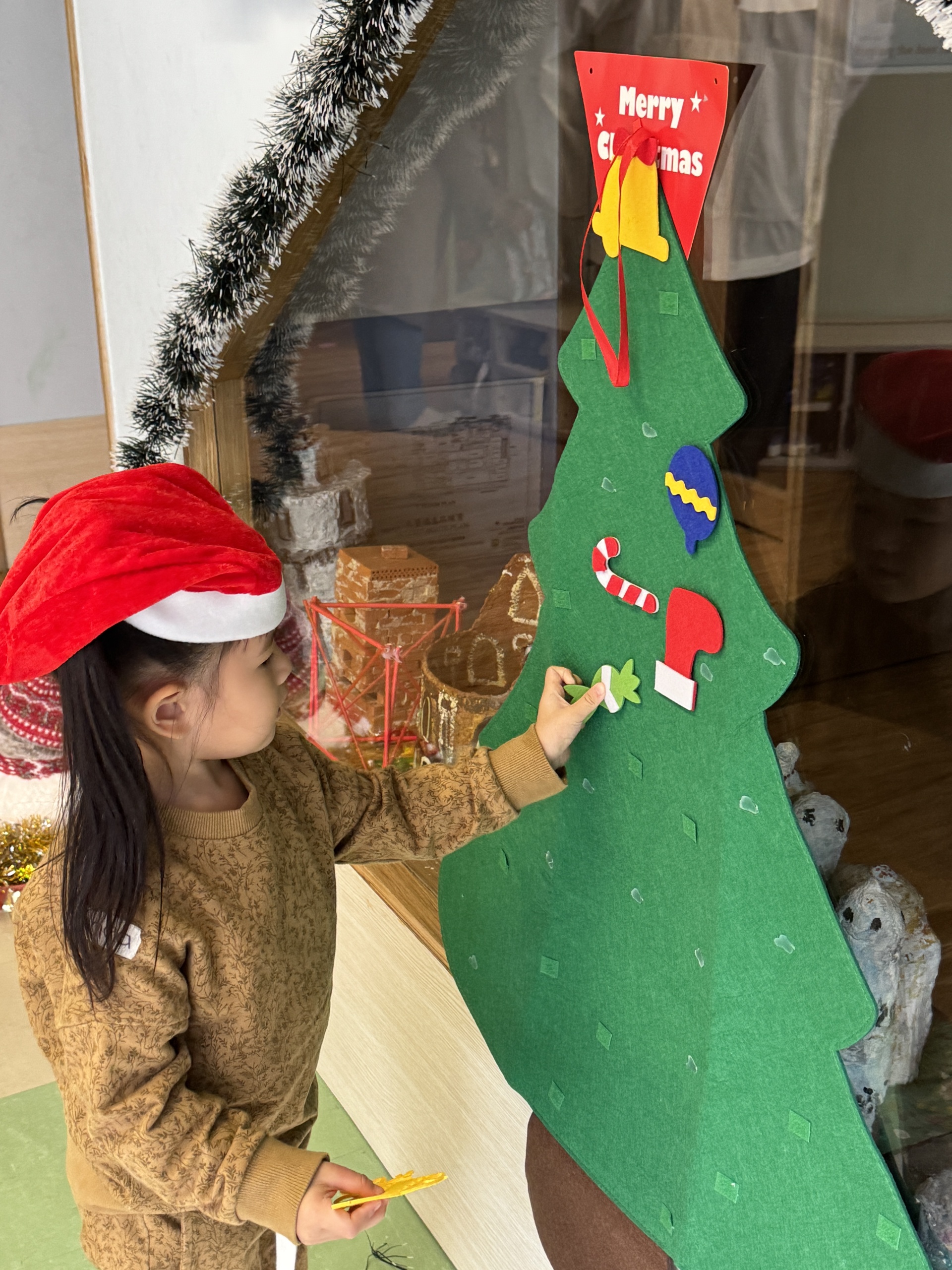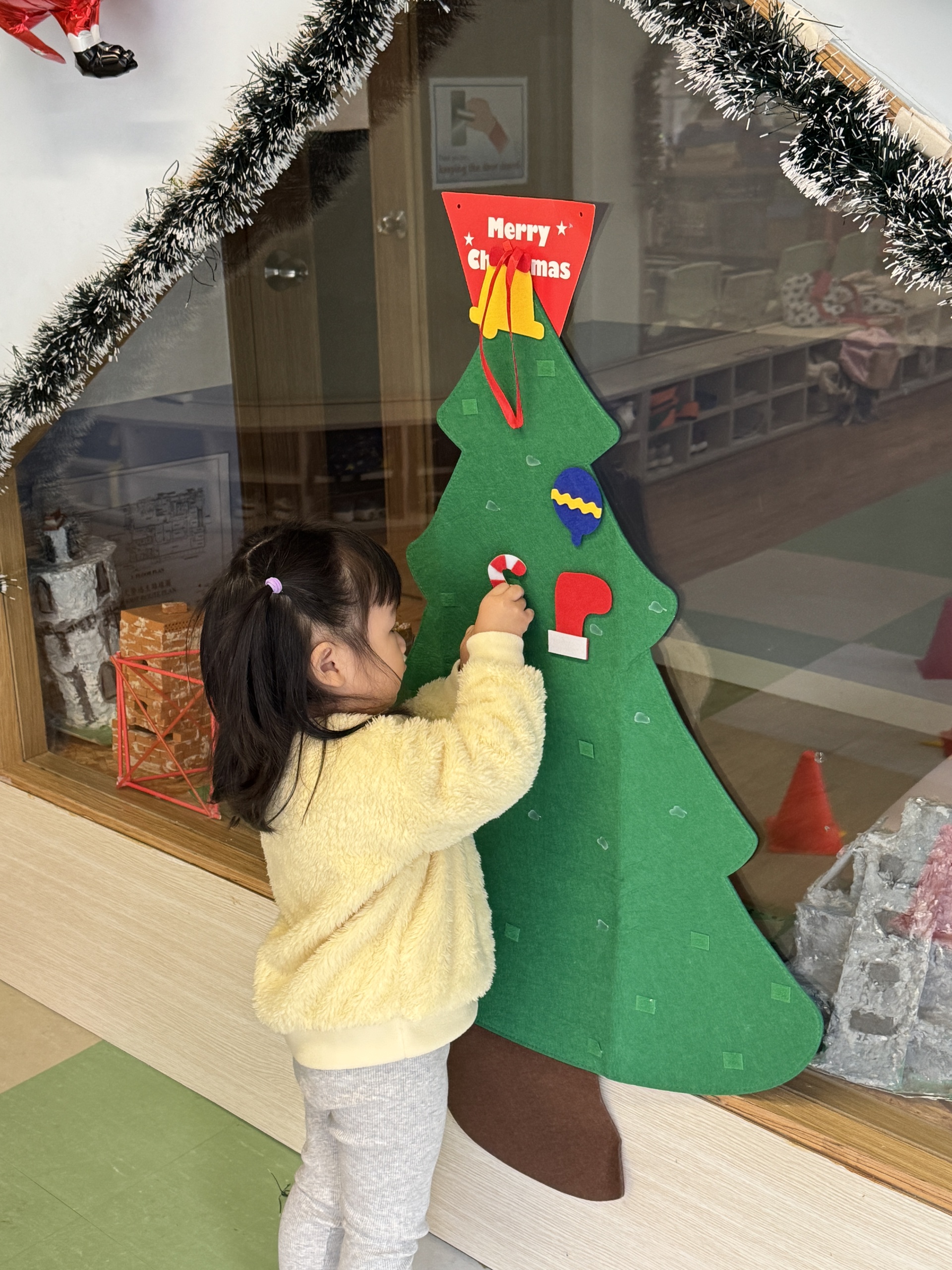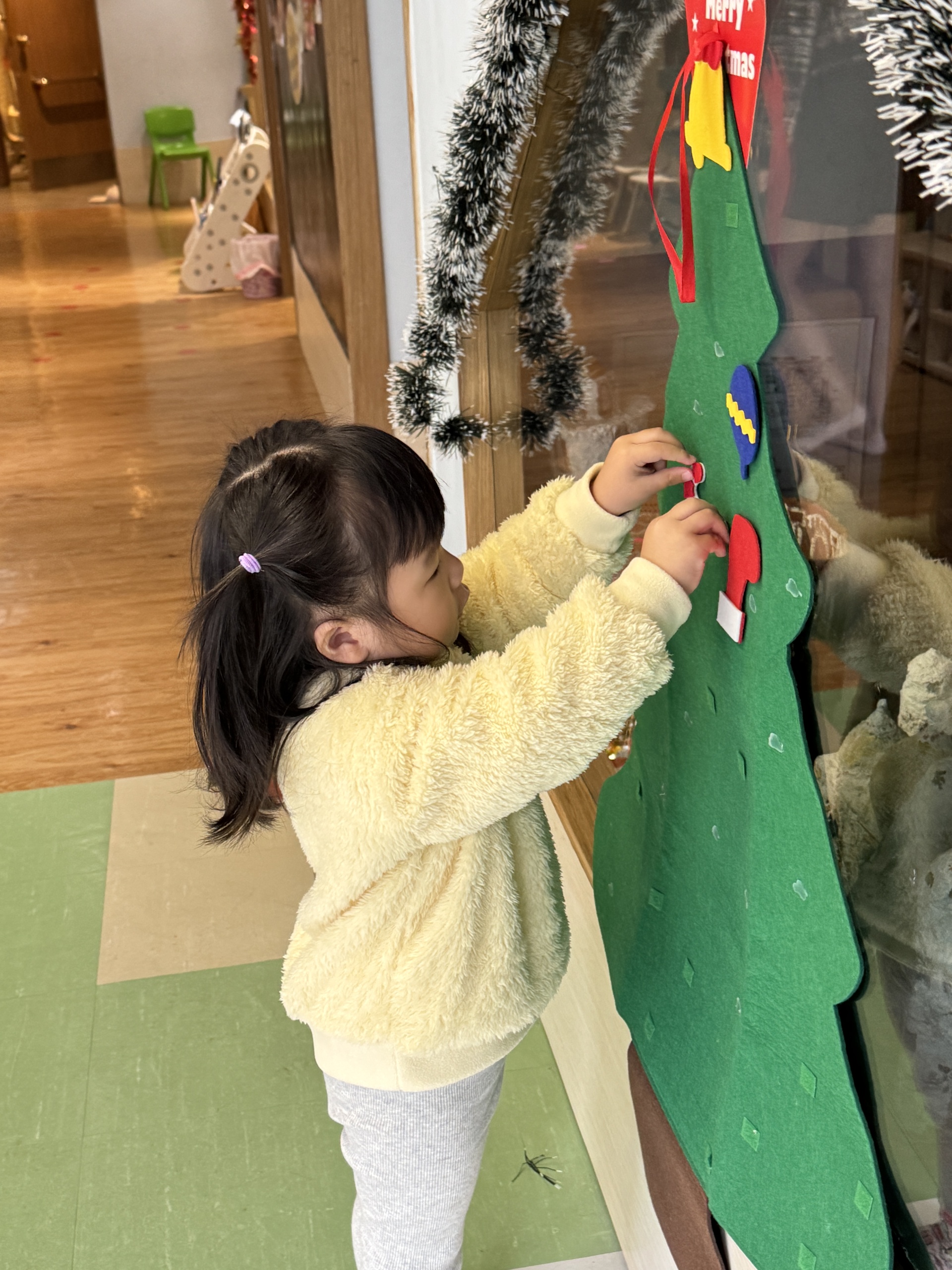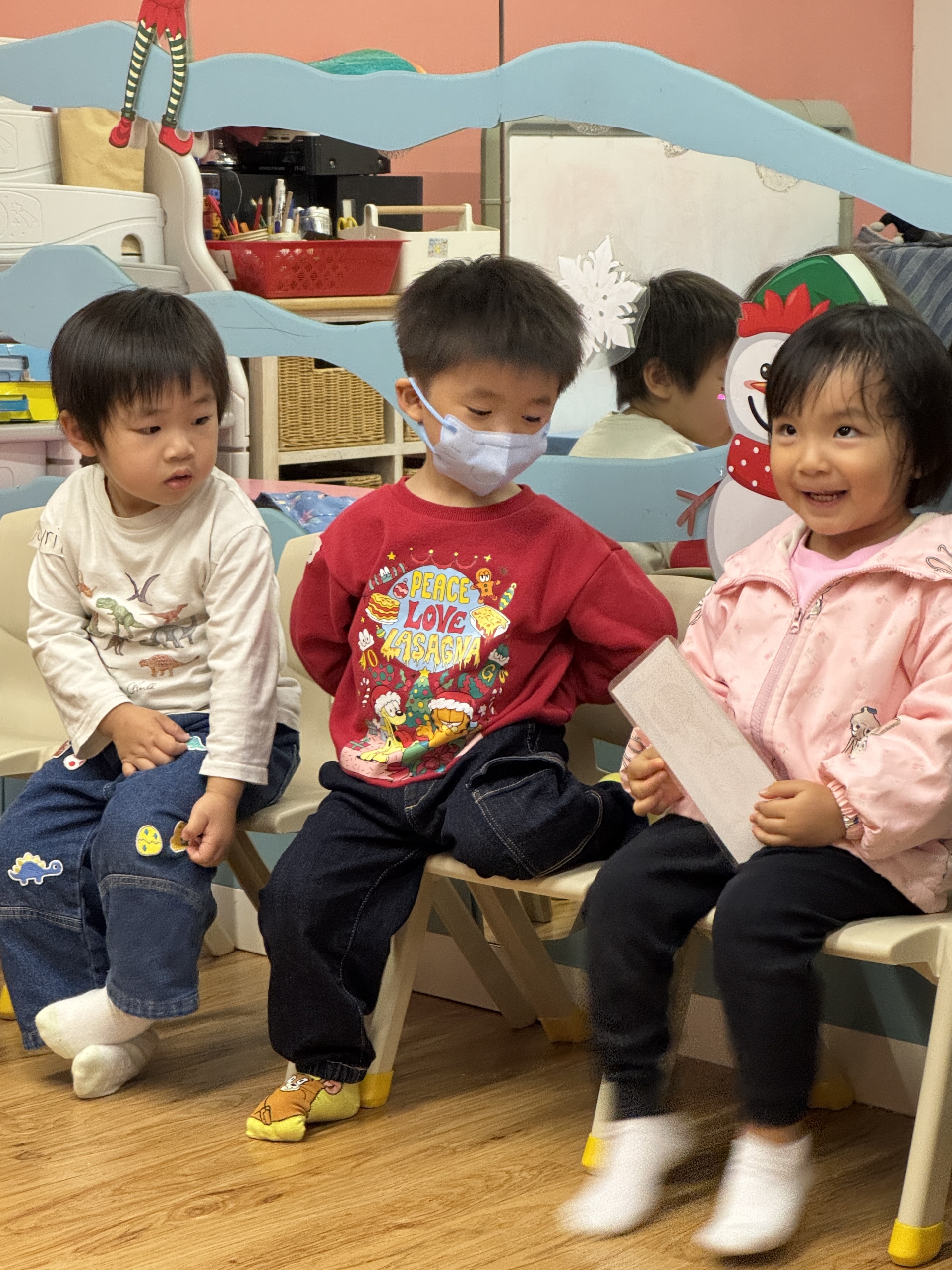 今天我們親手製作了聖誕老人的手工作品,在音樂呼啦圈的團體遊戲中跟著節奏歡笑奔跑,還一起用閃亮的裝飾點亮了屬於我們的聖誕樹。
