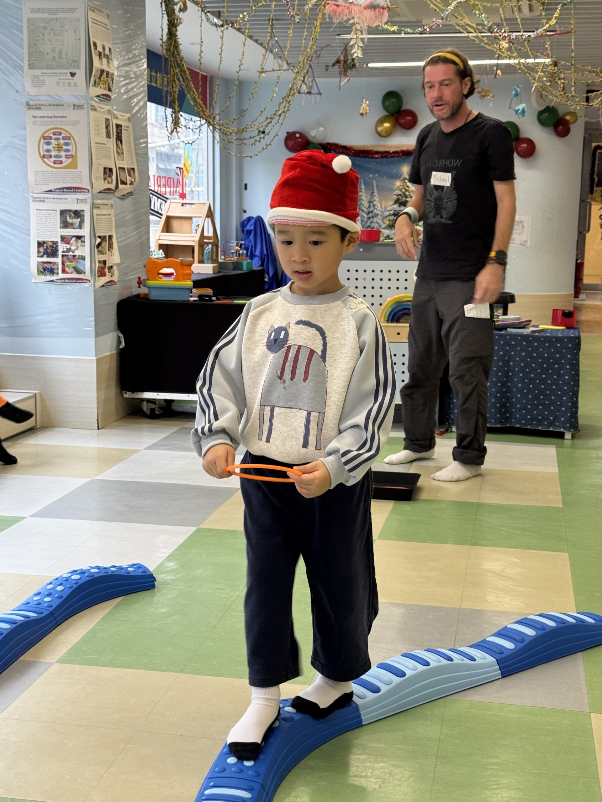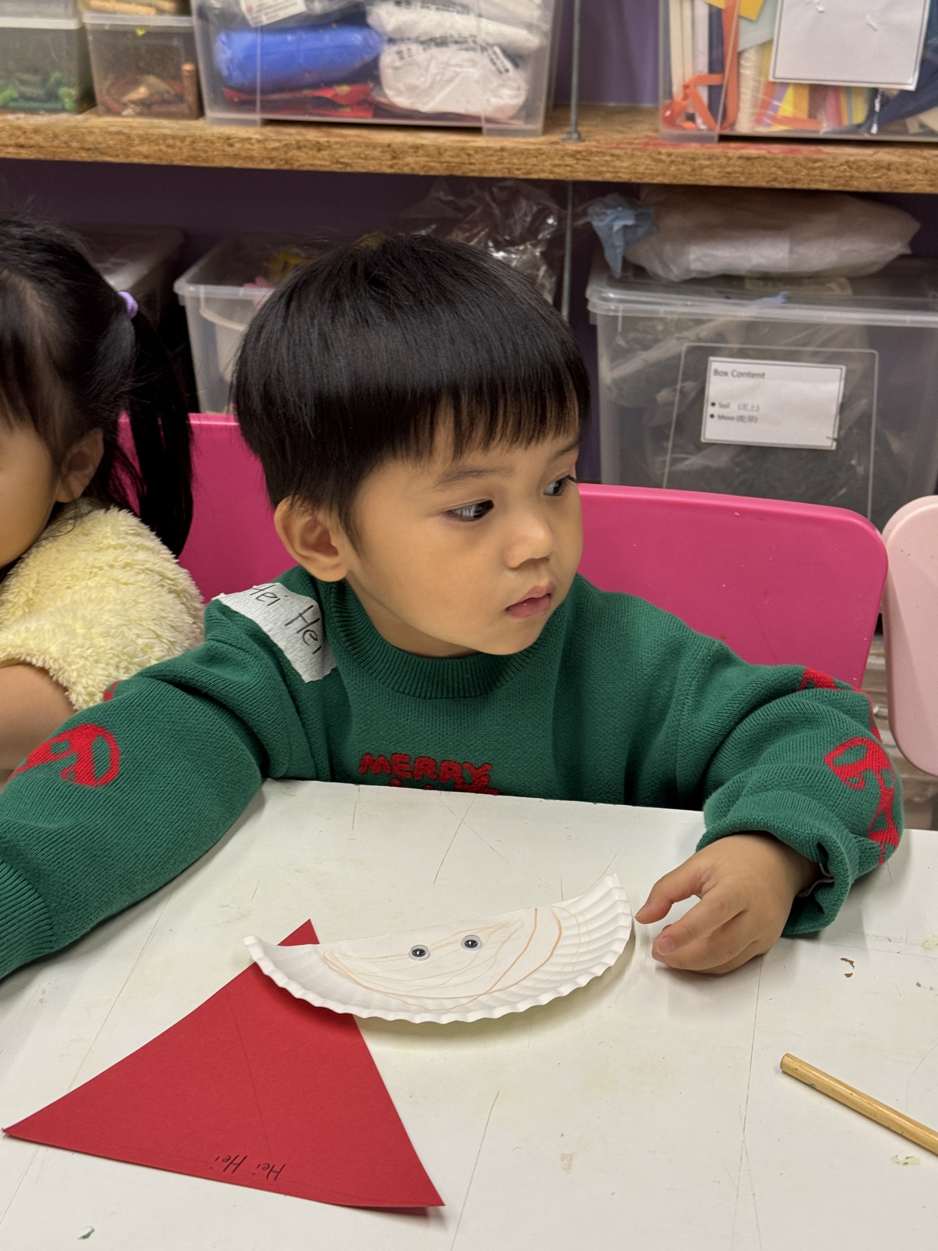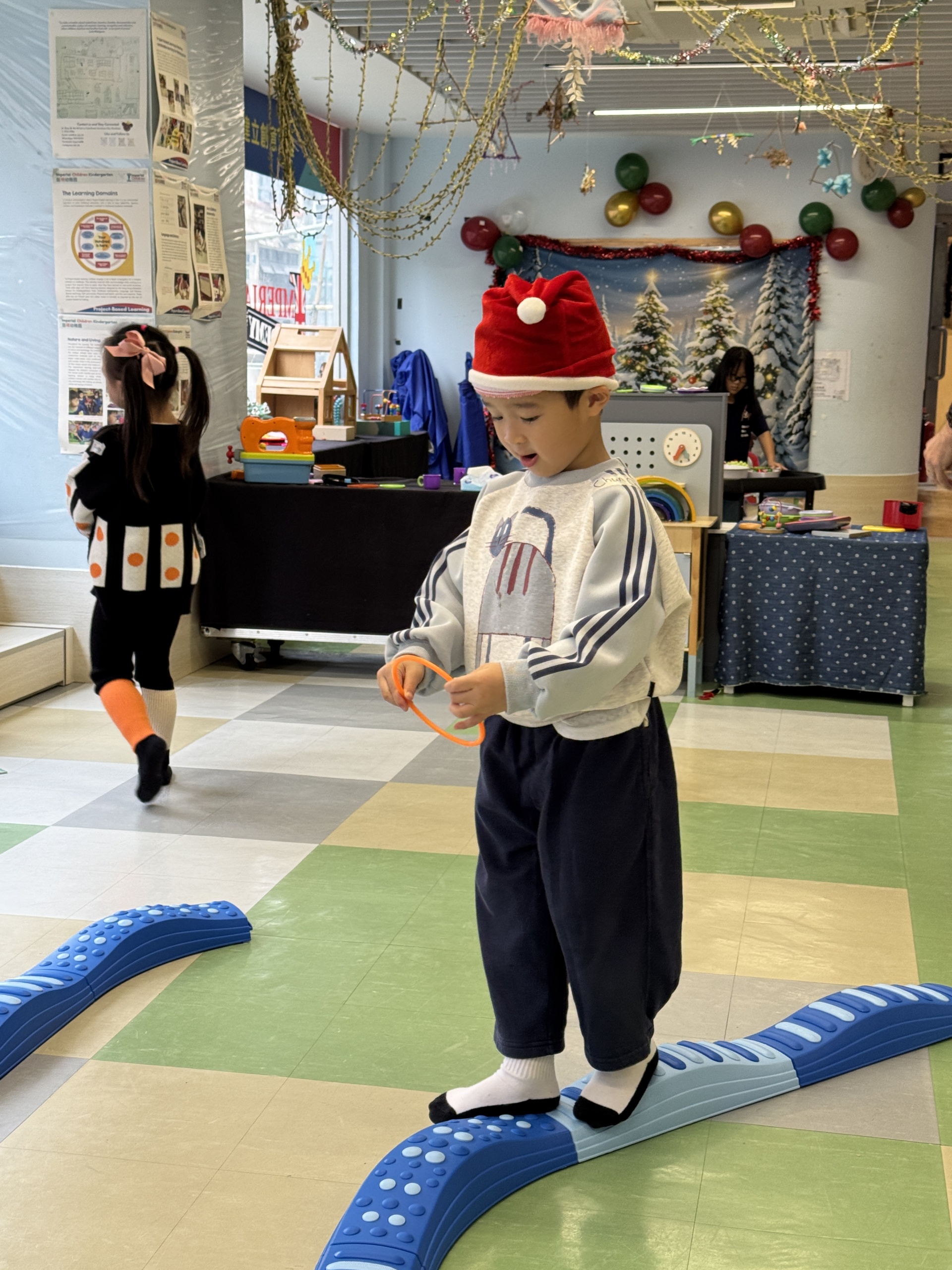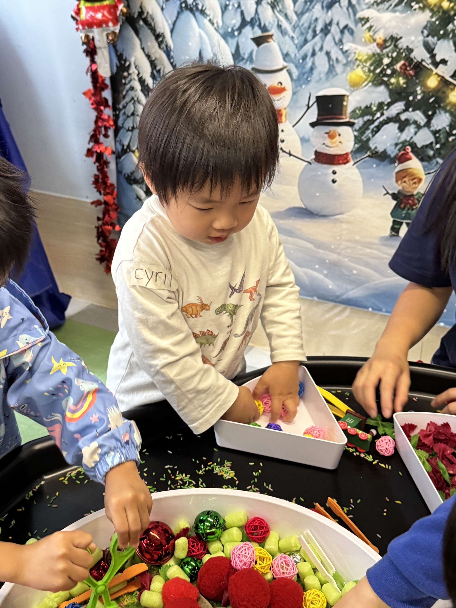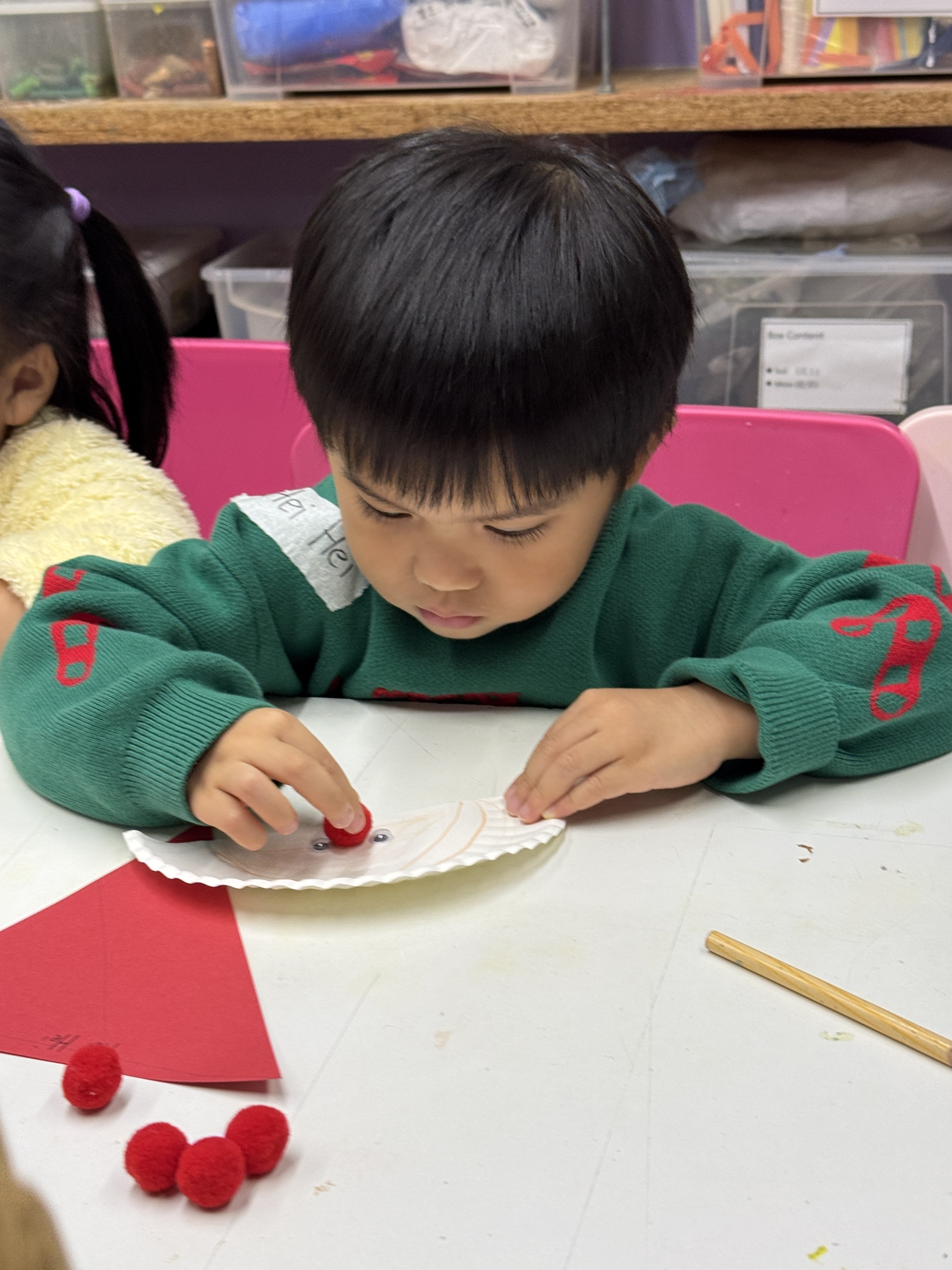 今天我們親手製作了聖誕老人的手工作品,在音樂呼啦圈的團體遊戲中跟著節奏歡笑奔跑,還一起用閃亮的裝飾點亮了屬於我們的聖誕樹。