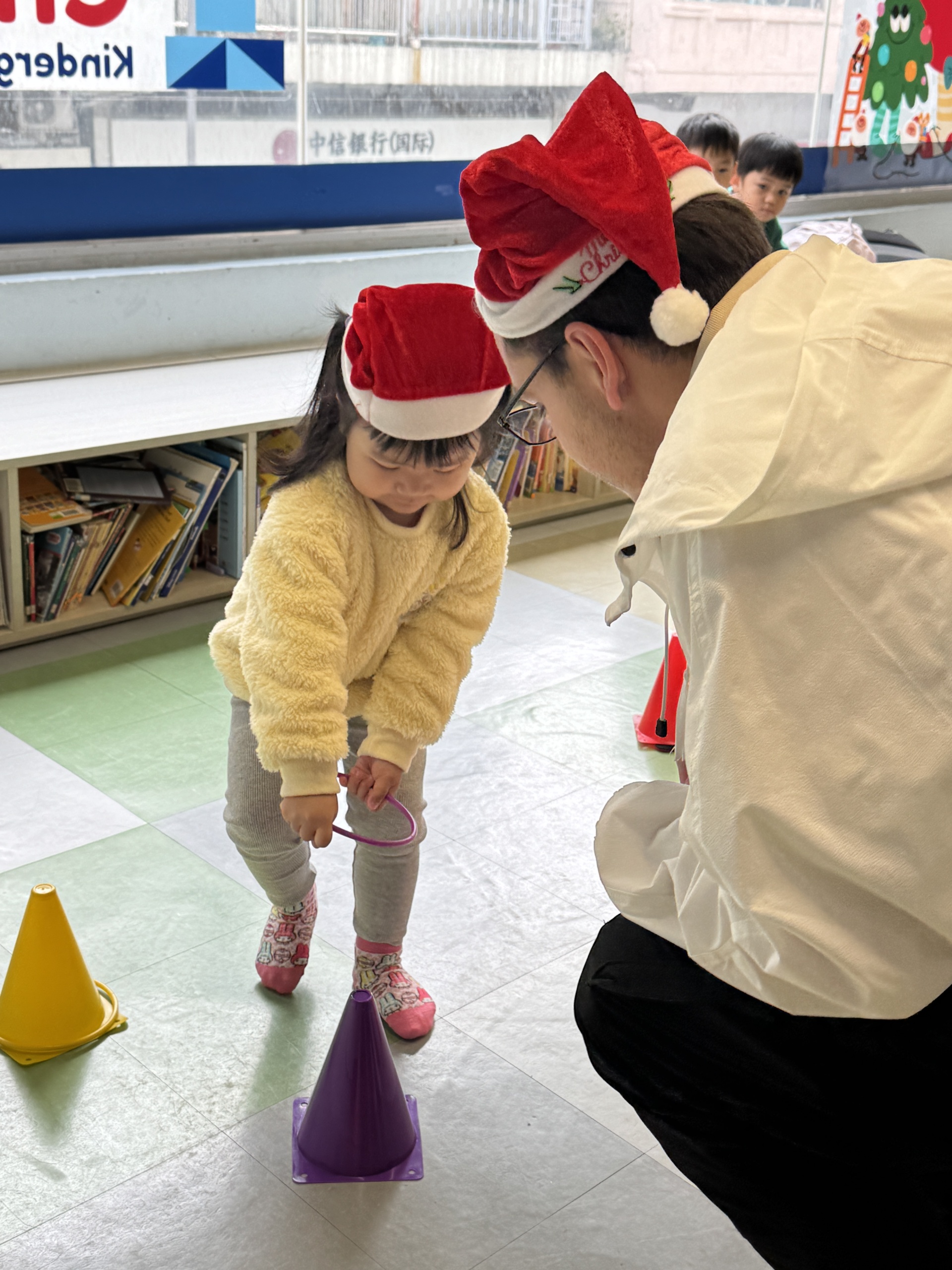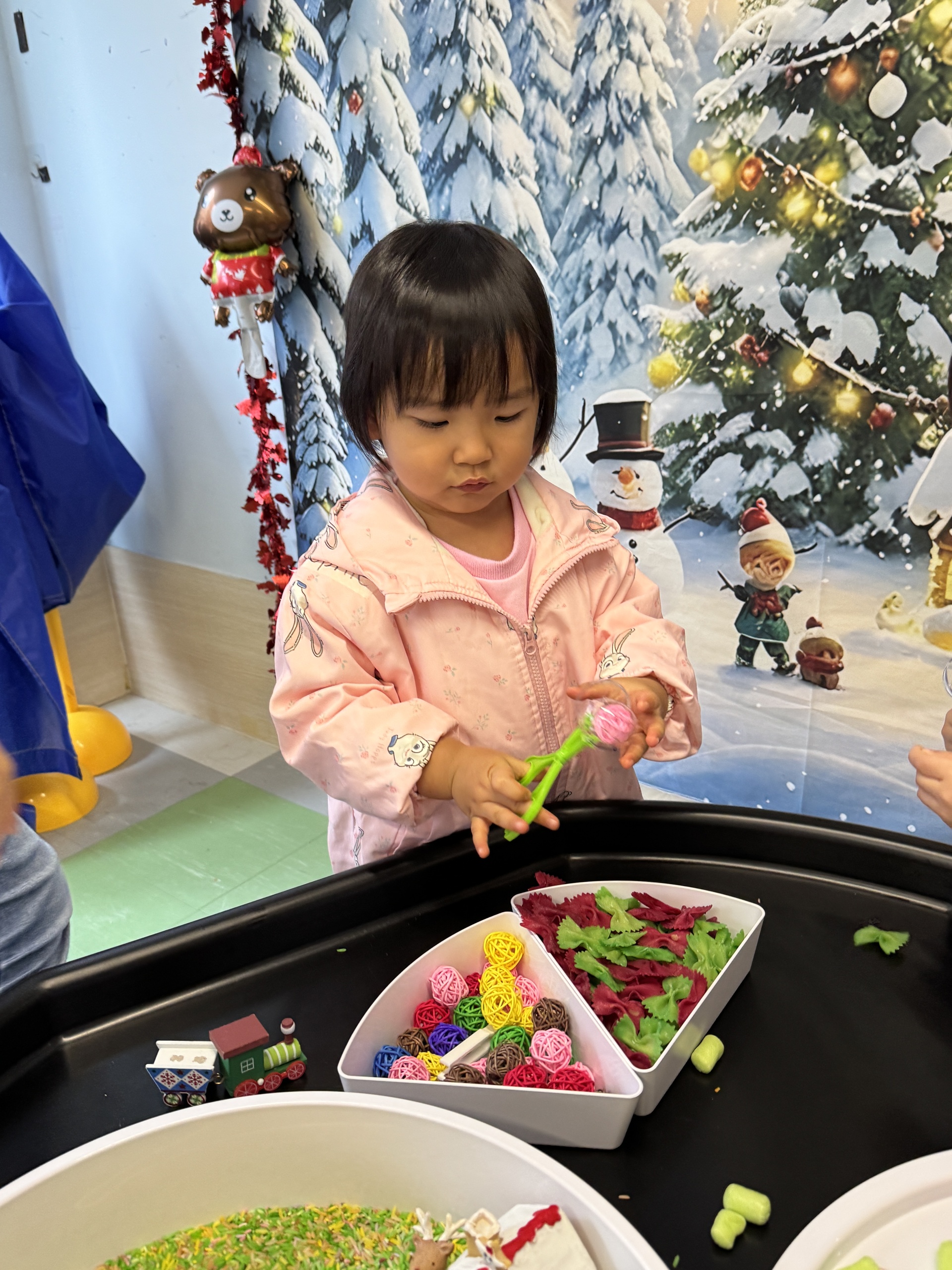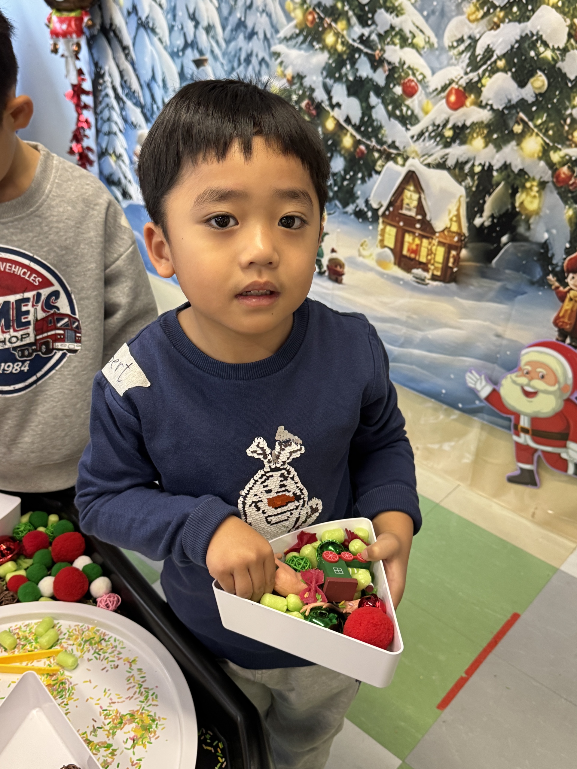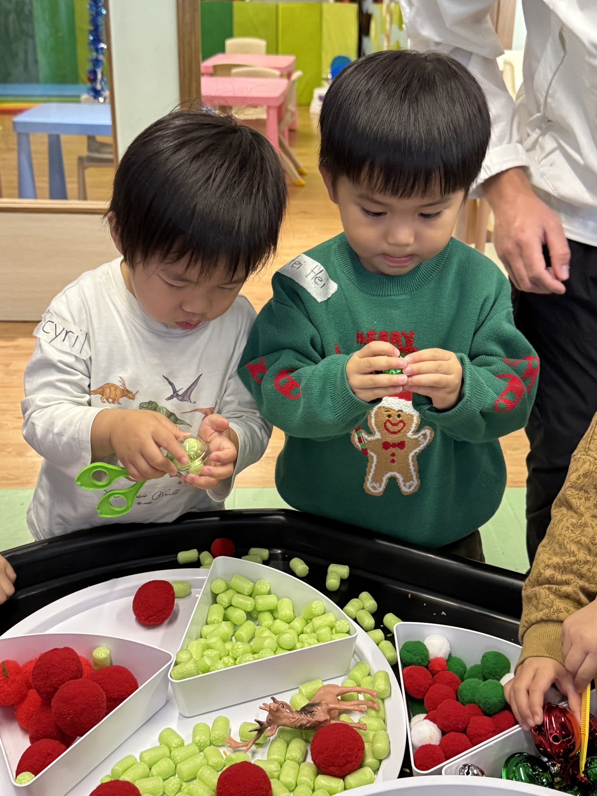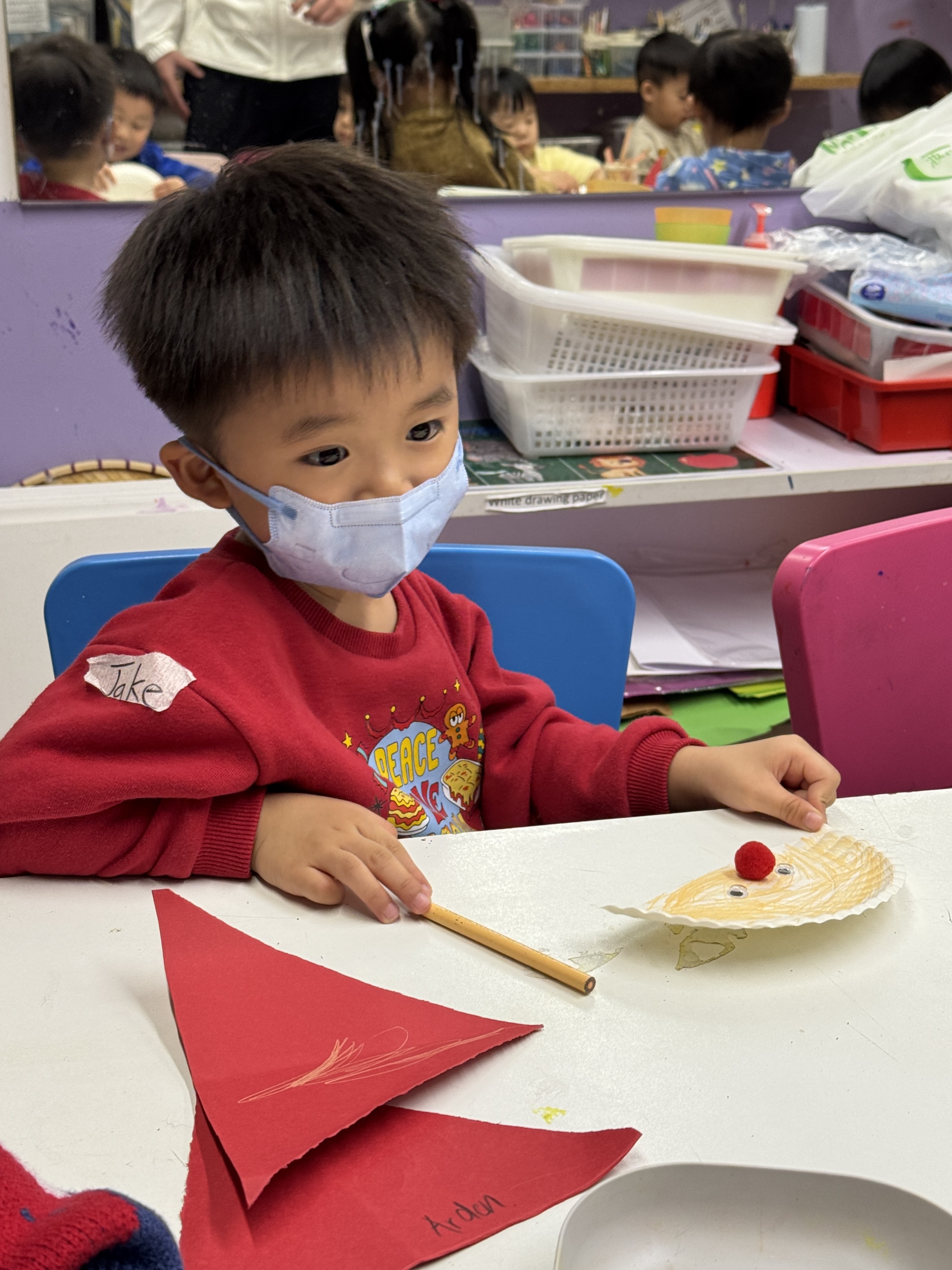 今天我們親手製作了聖誕老人的手工作品,在音樂呼啦圈的團體遊戲中跟著節奏歡笑奔跑,還一起用閃亮的裝飾點亮了屬於我們的聖誕樹。