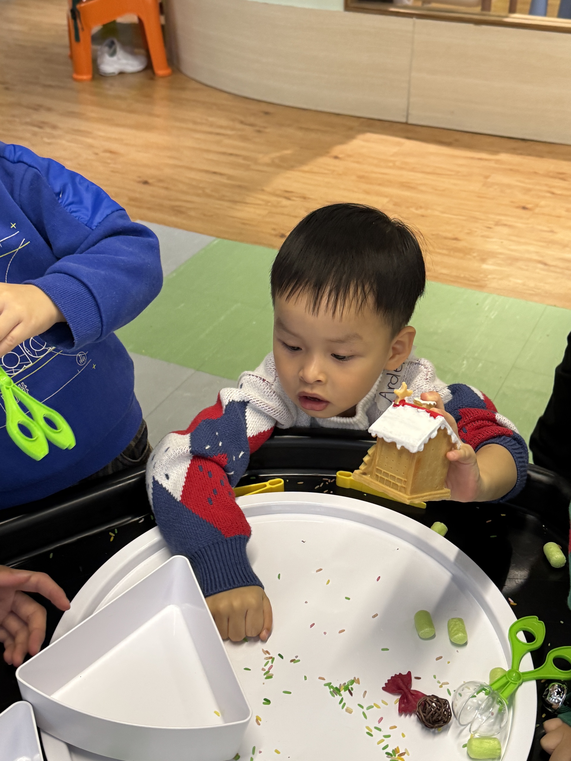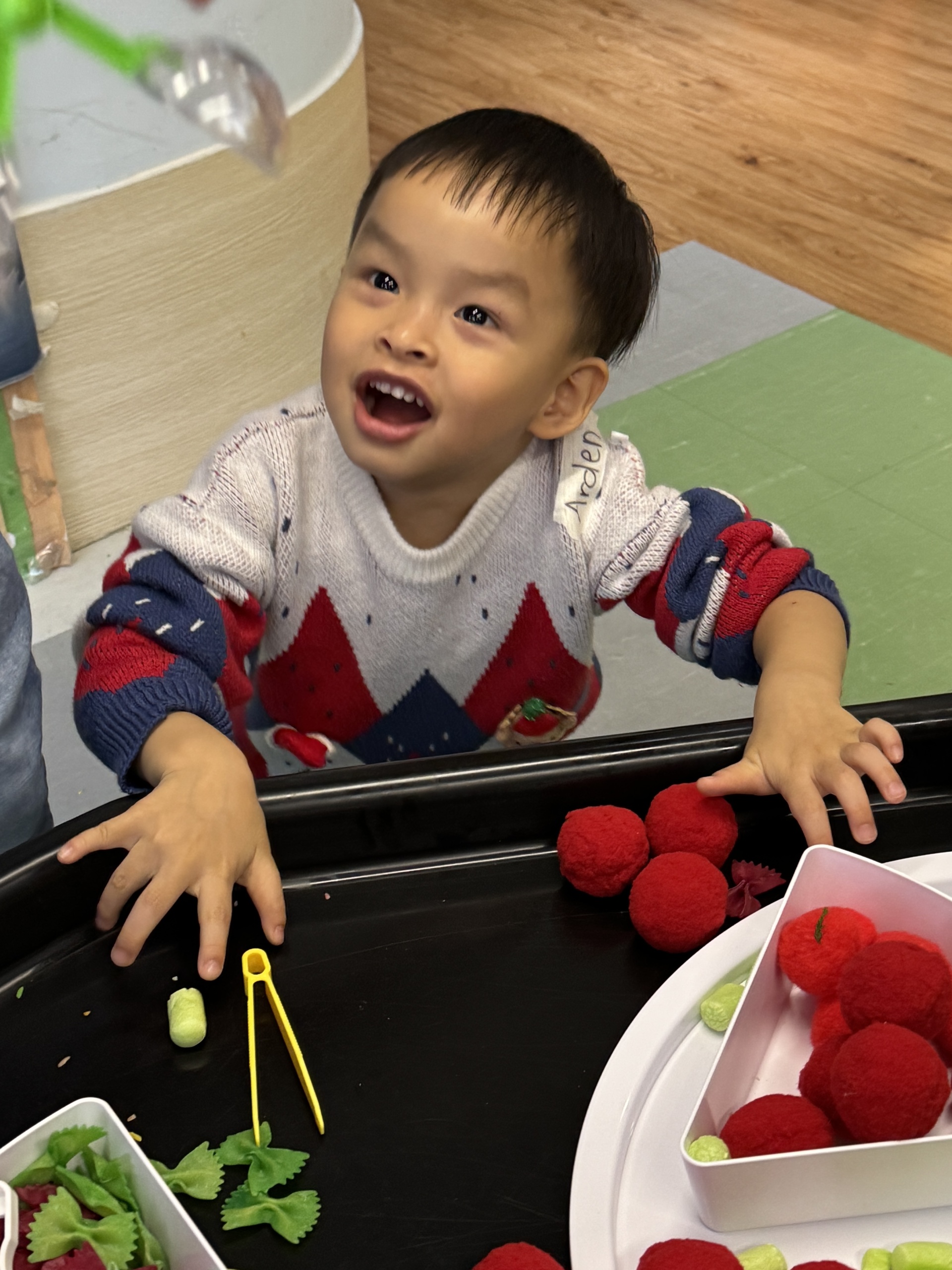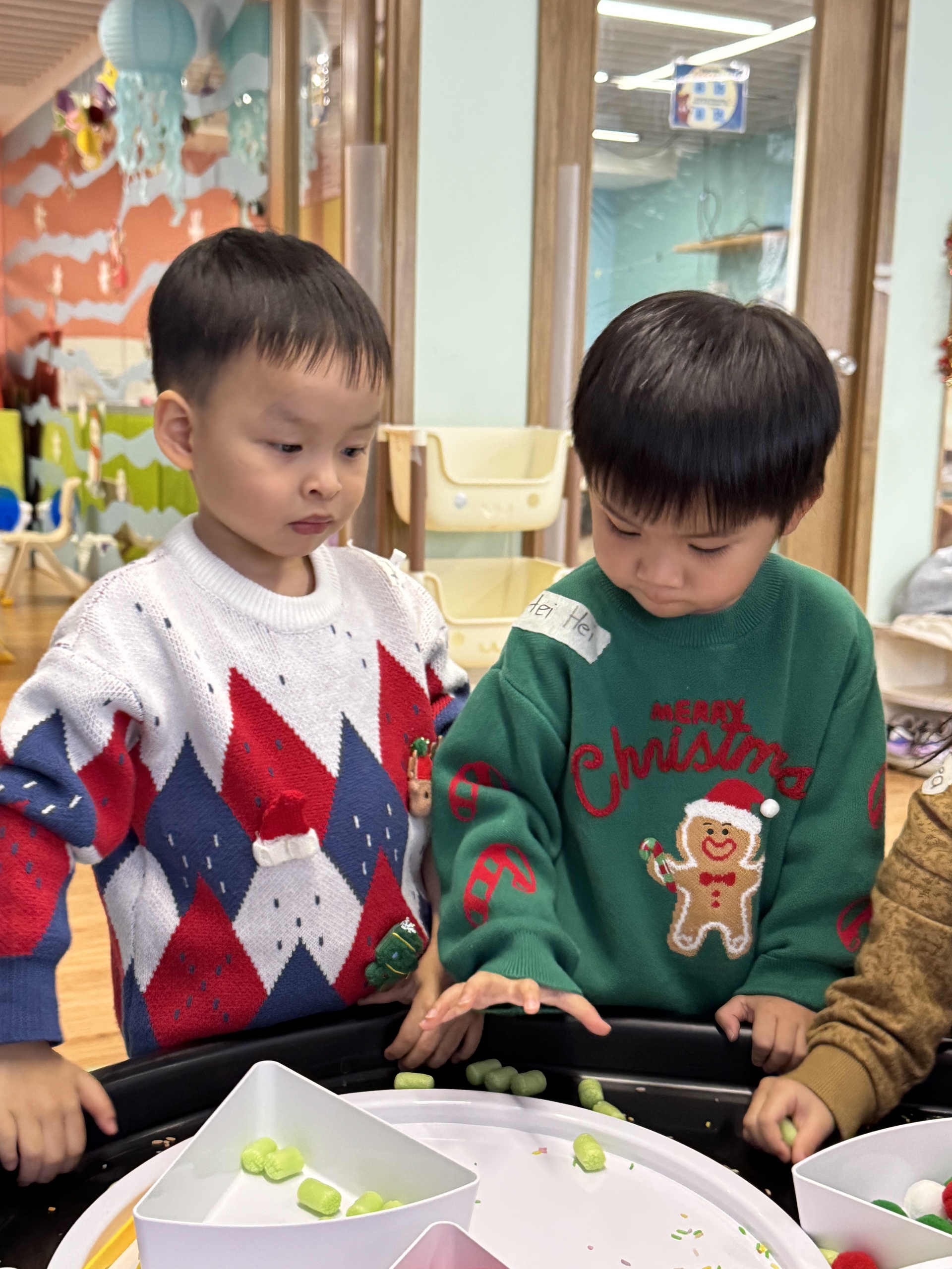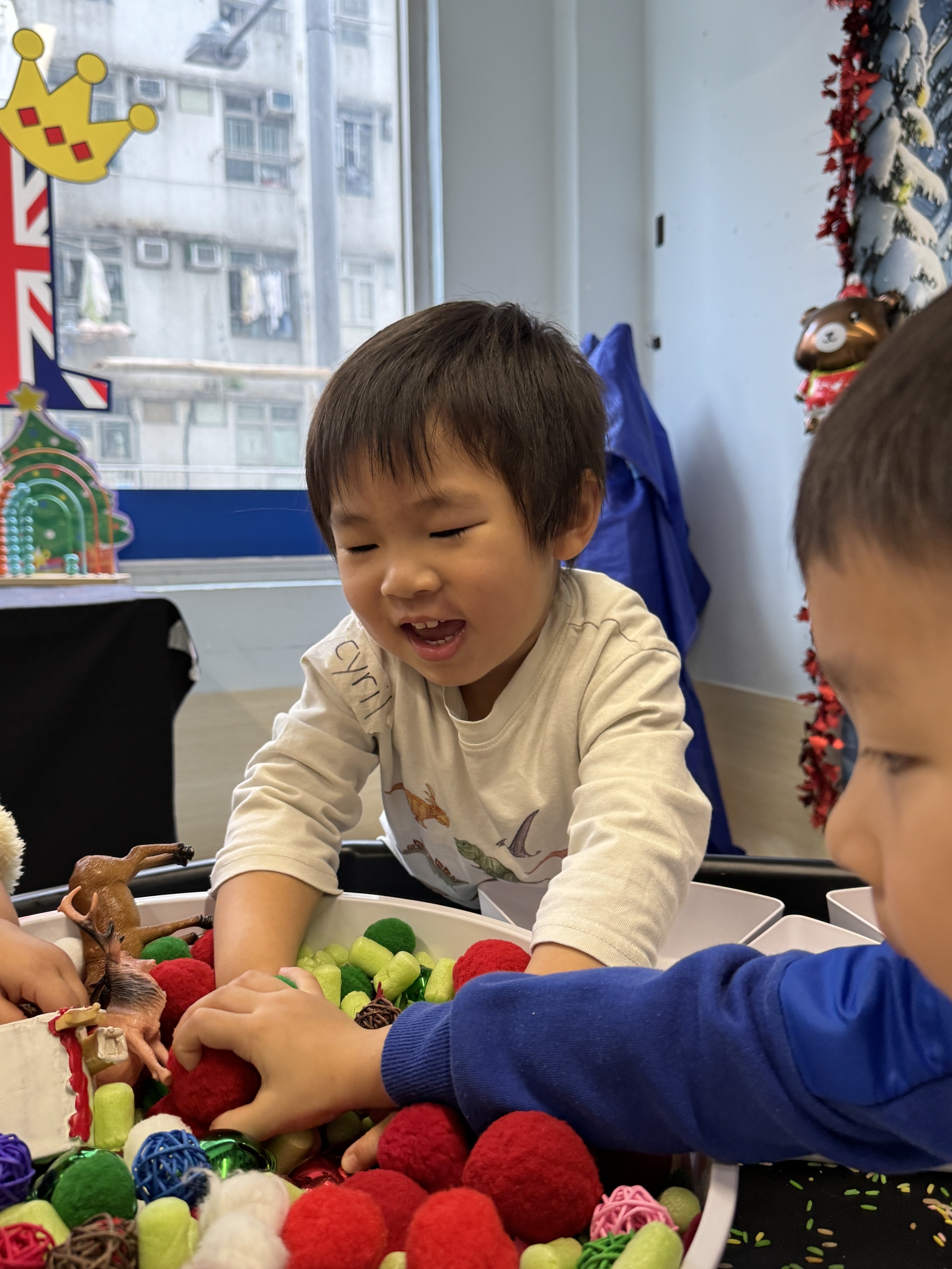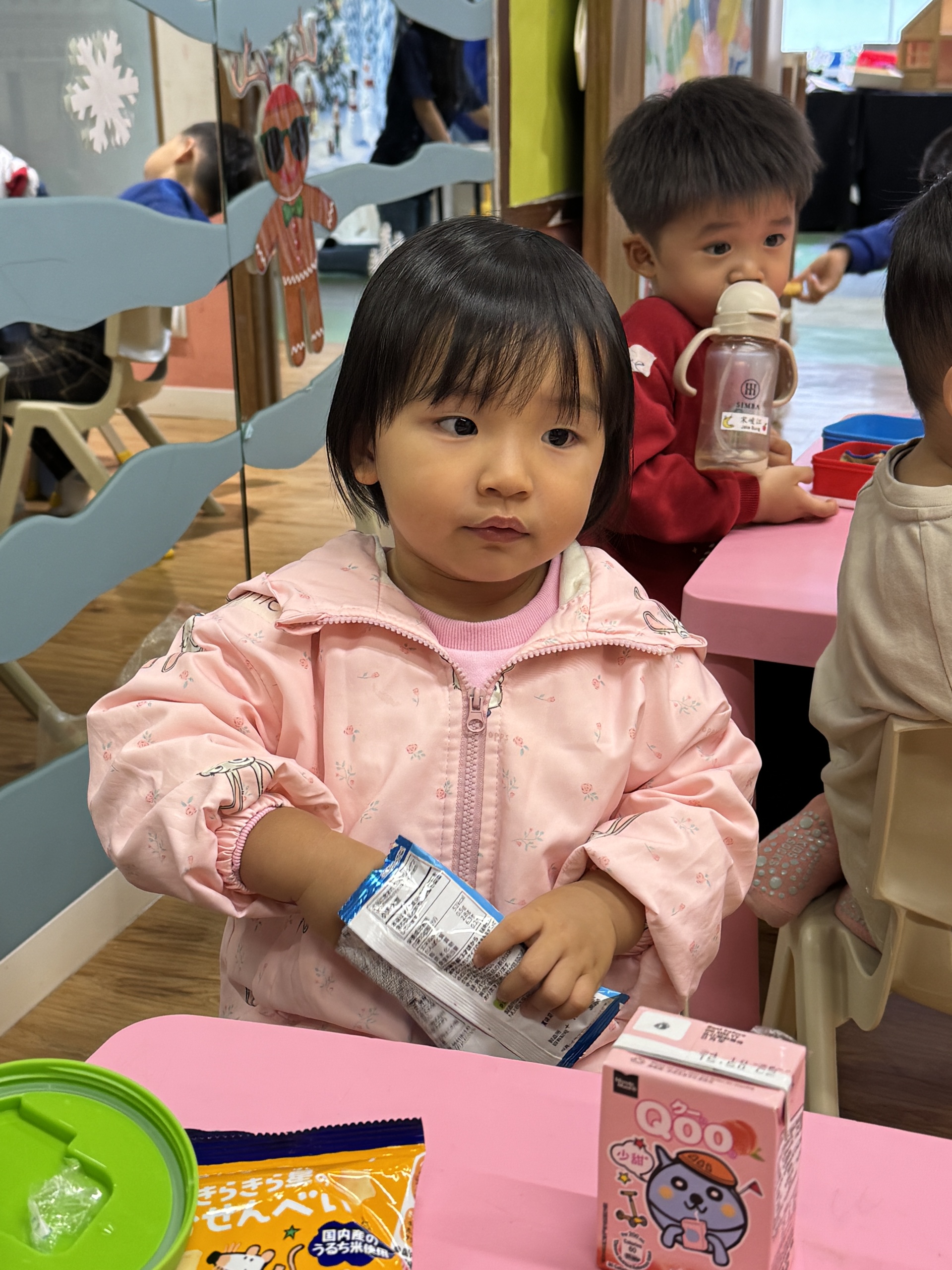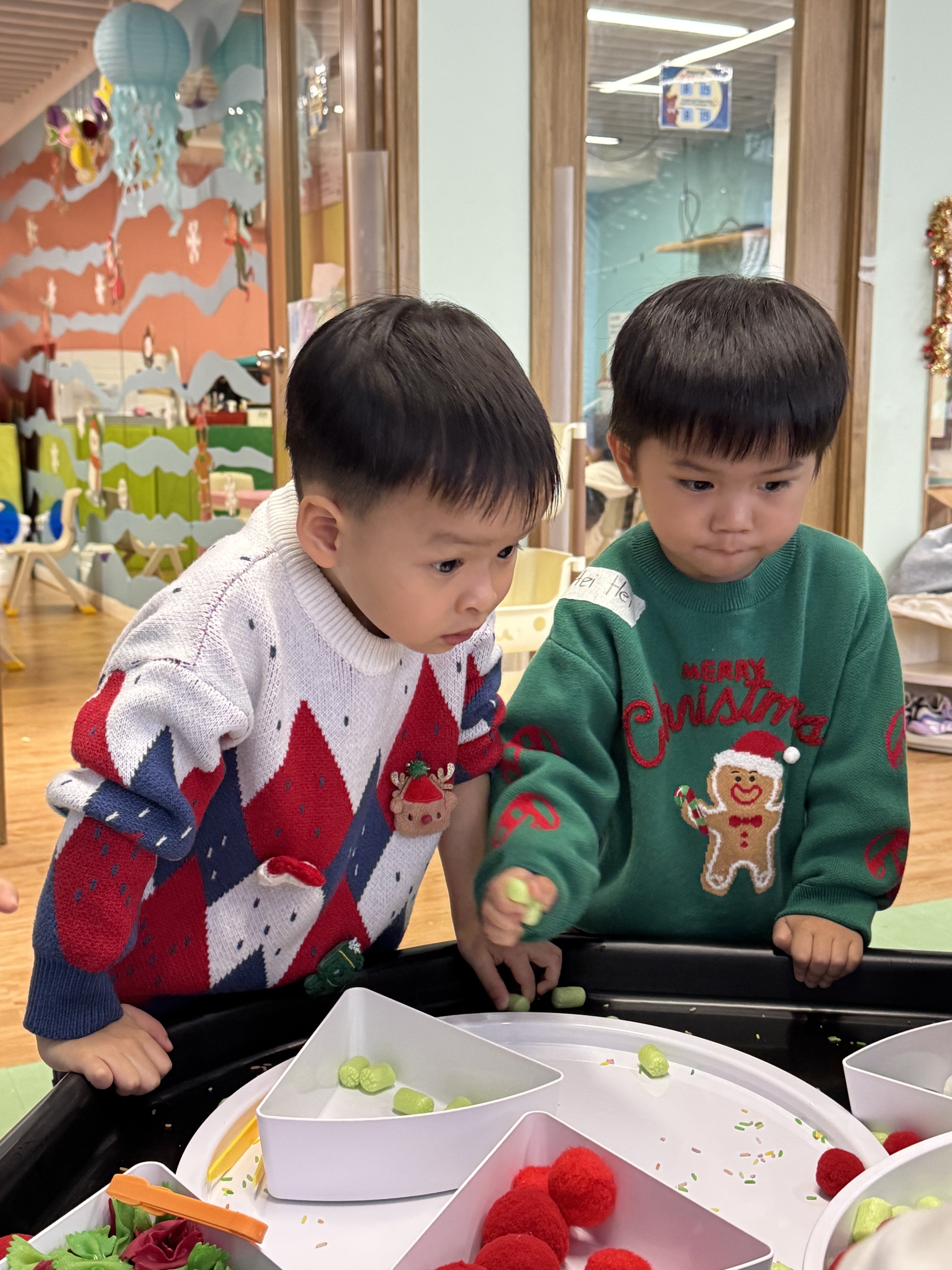 今天我們親手製作了聖誕老人的手工作品,在音樂呼啦圈的團體遊戲中跟著節奏歡笑奔跑,還一起用閃亮的裝飾點亮了屬於我們的聖誕樹。
