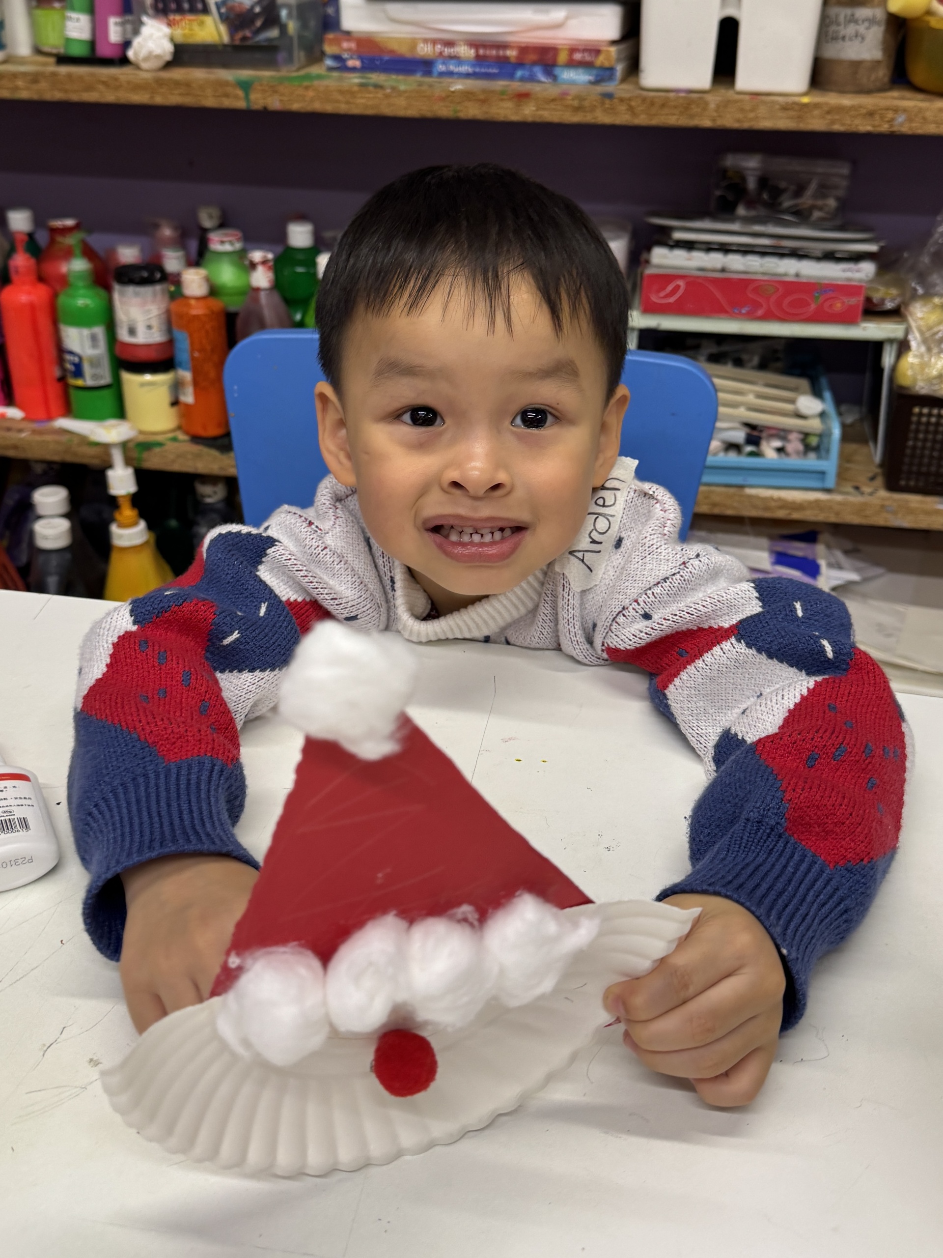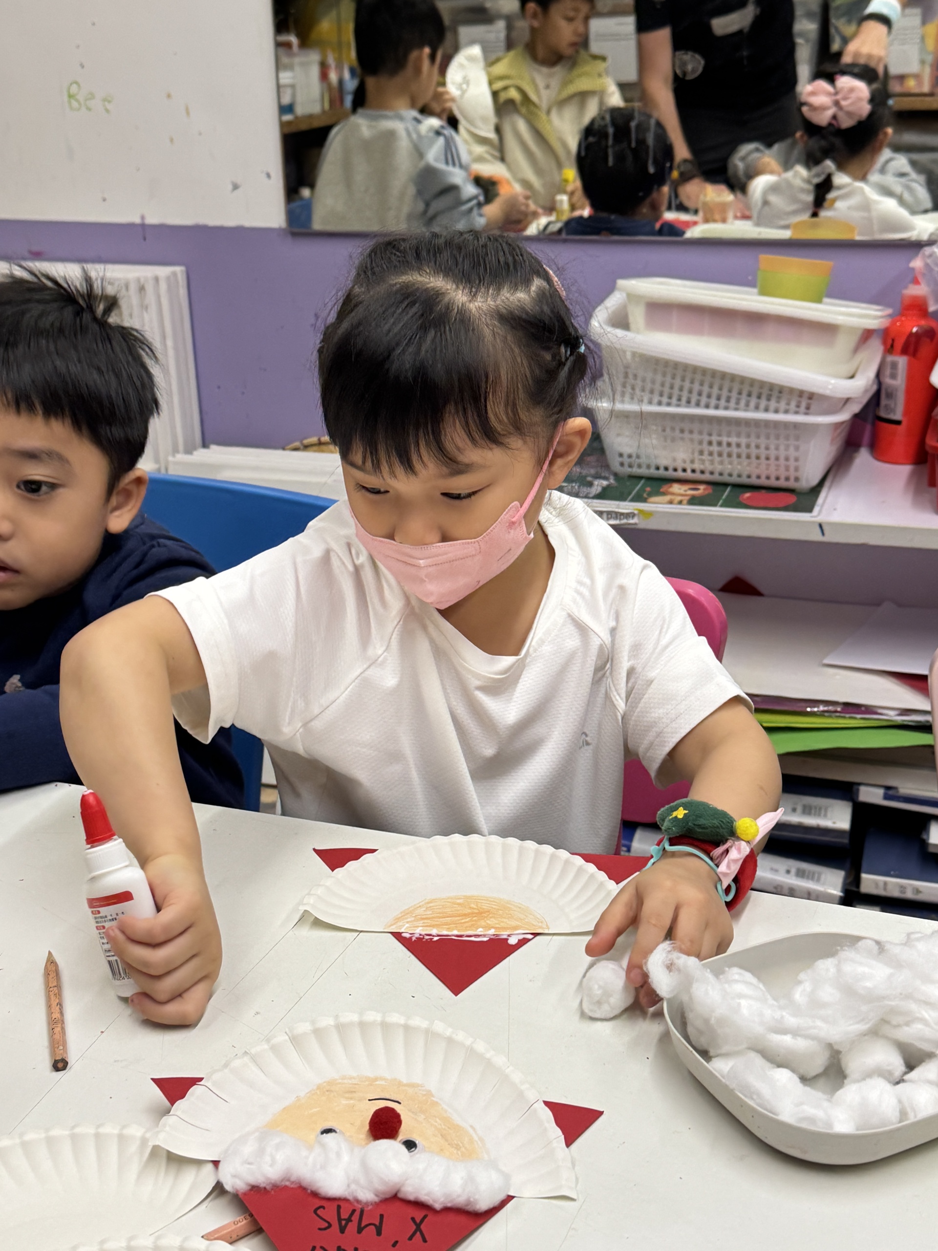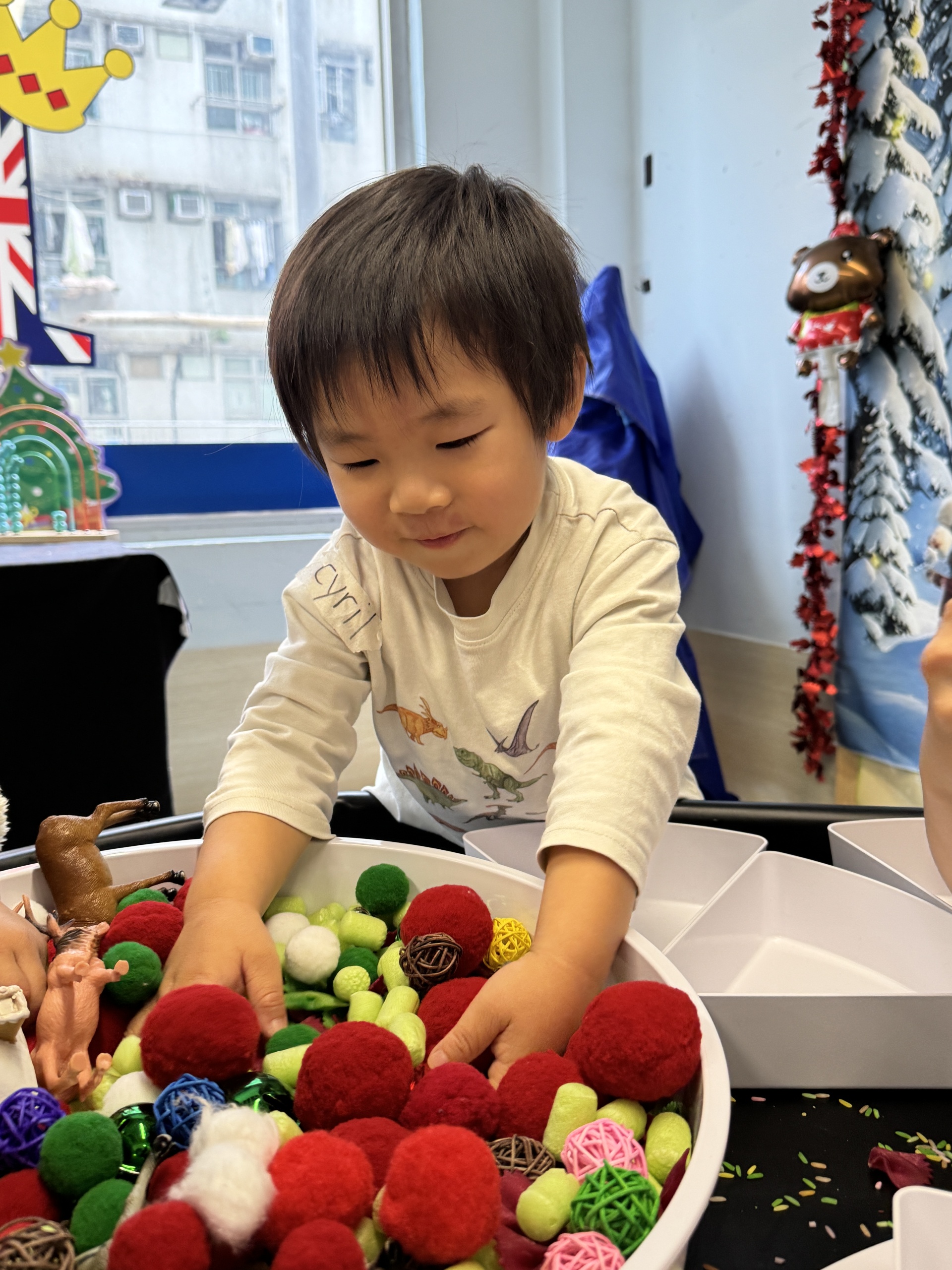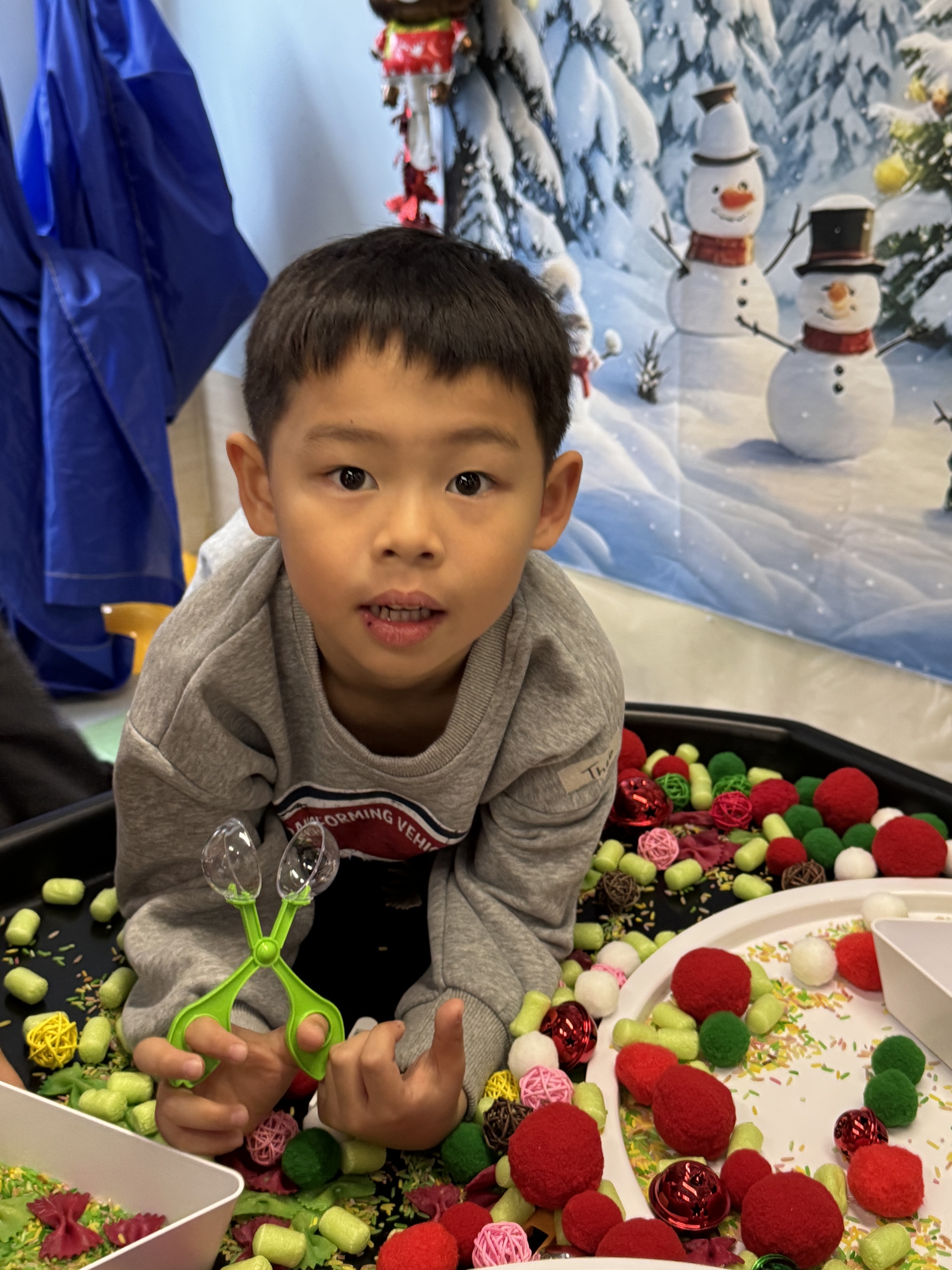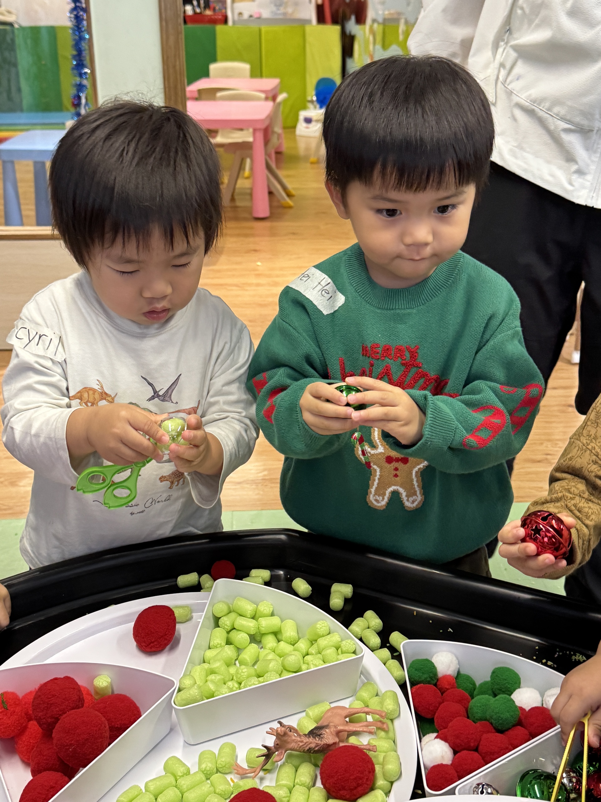 今天我們親手製作了聖誕老人的手工作品,在音樂呼啦圈的團體遊戲中跟著節奏歡笑奔跑,還一起用閃亮的裝飾點亮了屬於我們的聖誕樹。