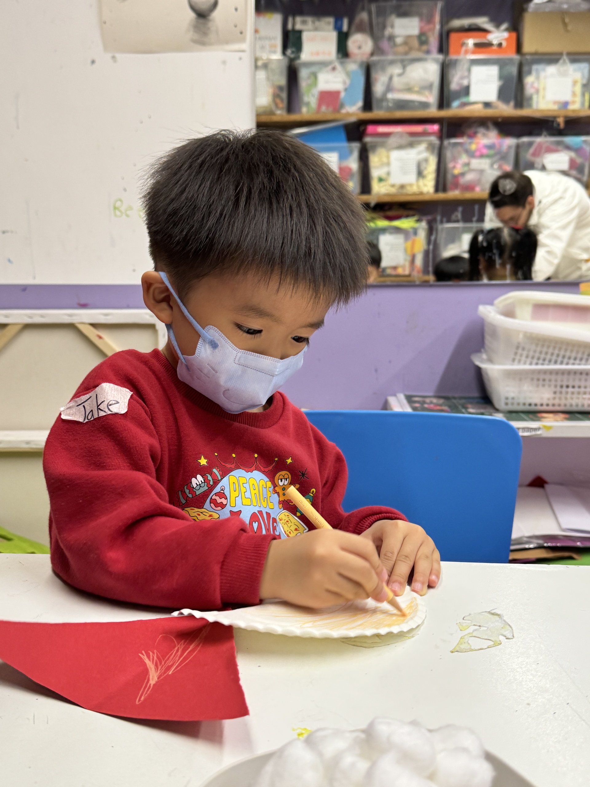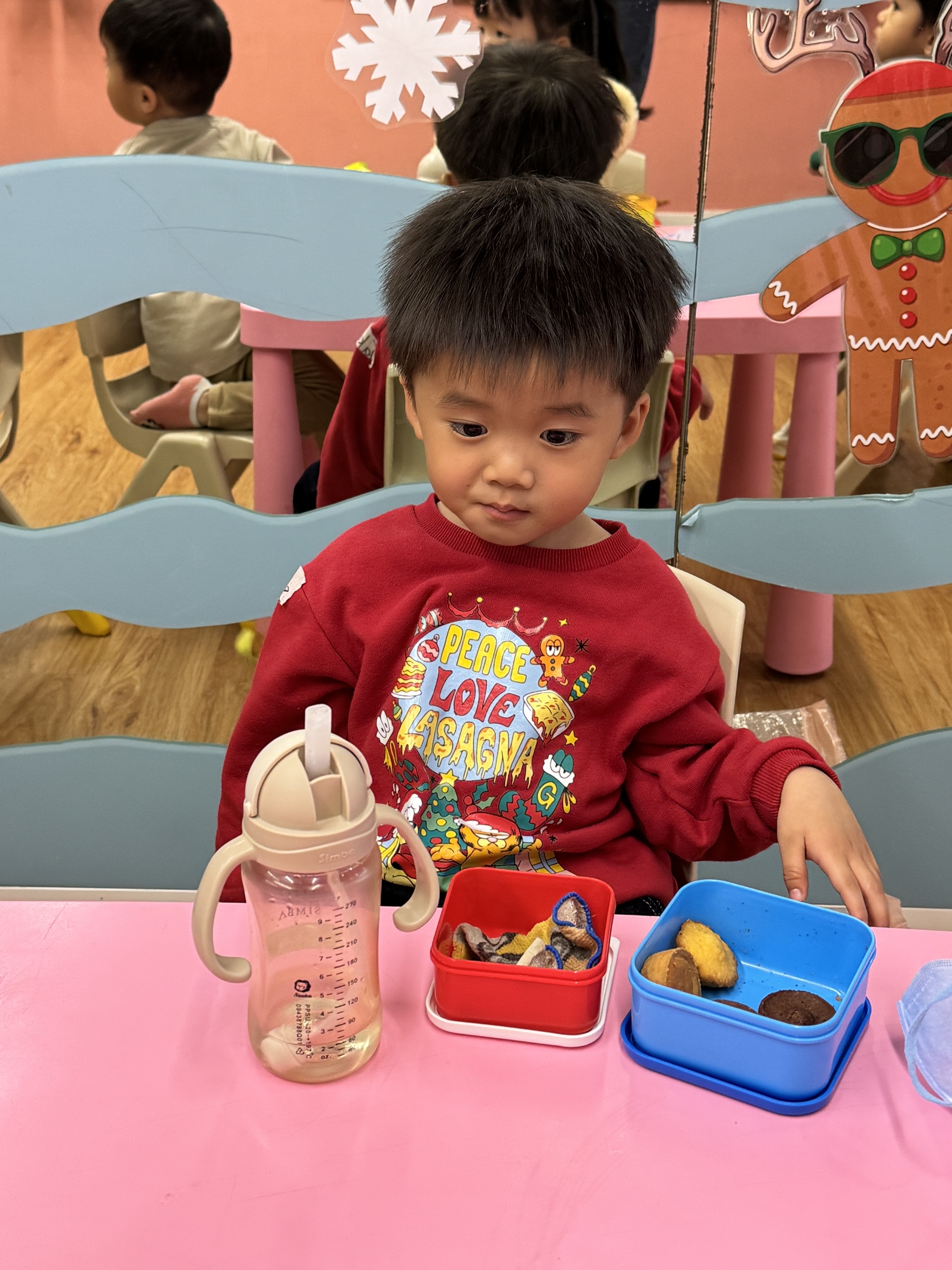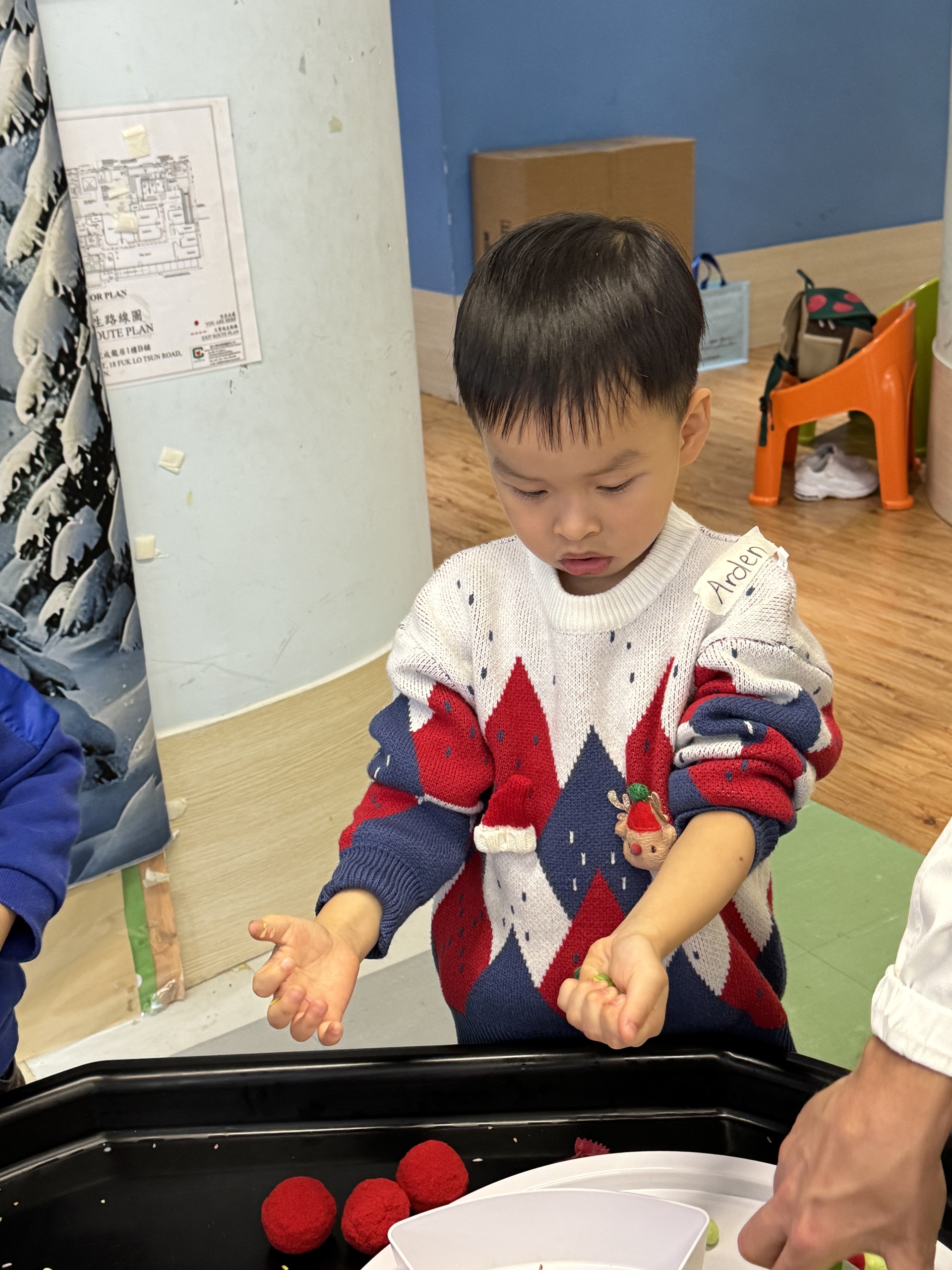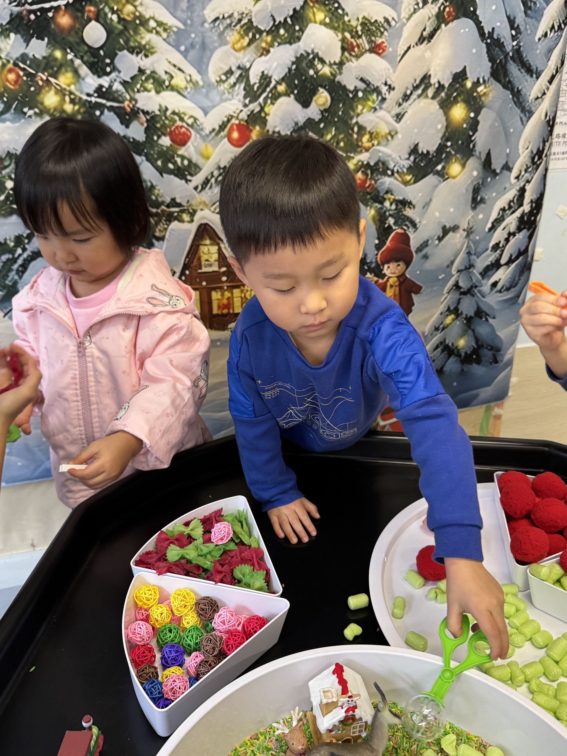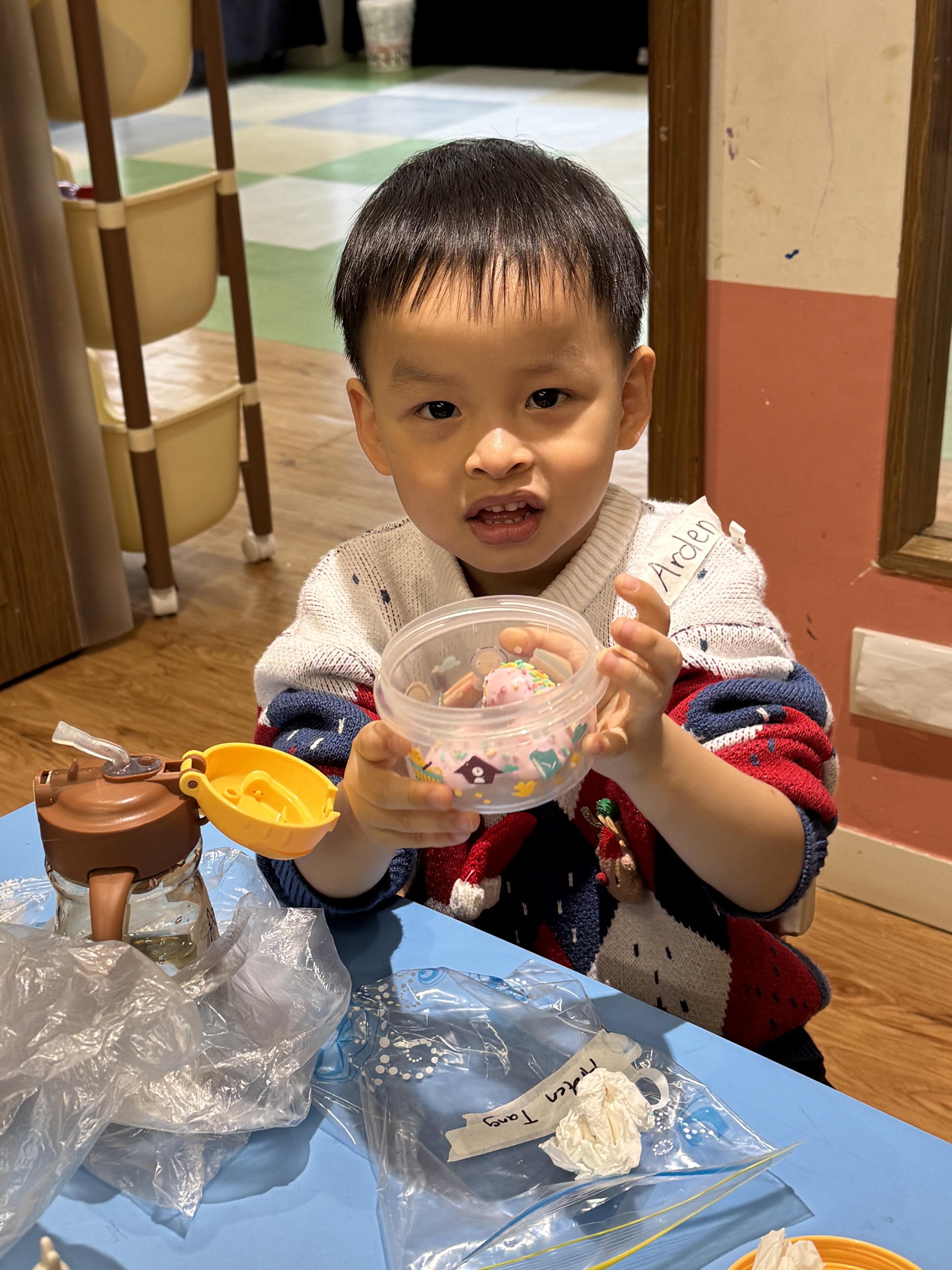 今天我們親手製作了聖誕老人的手工作品,在音樂呼啦圈的團體遊戲中跟著節奏歡笑奔跑,還一起用閃亮的裝飾點亮了屬於我們的聖誕樹。