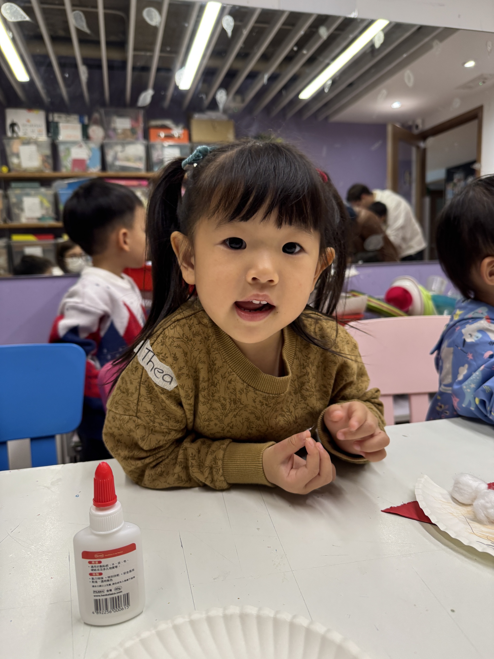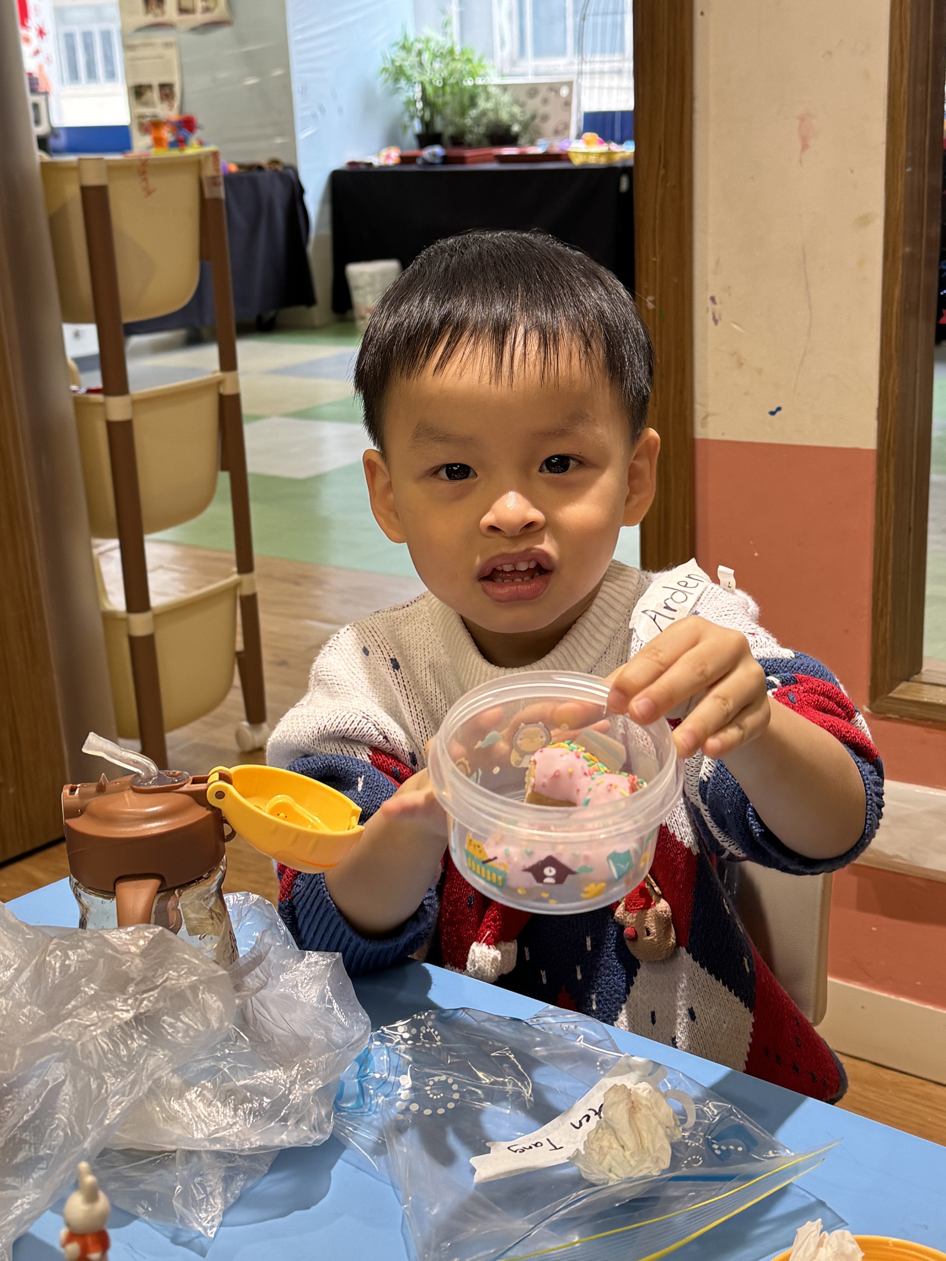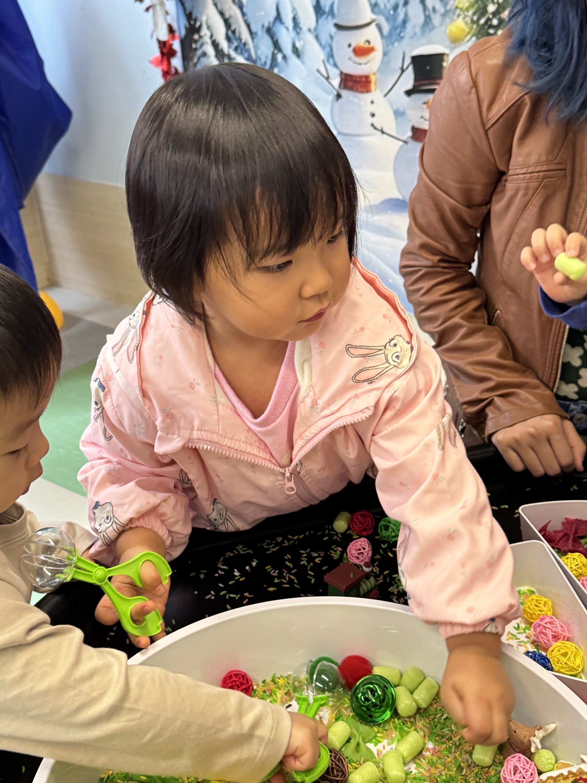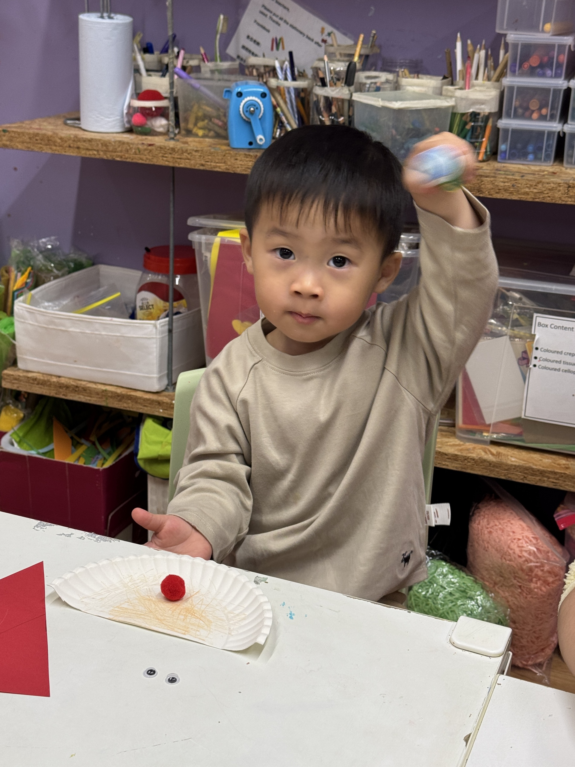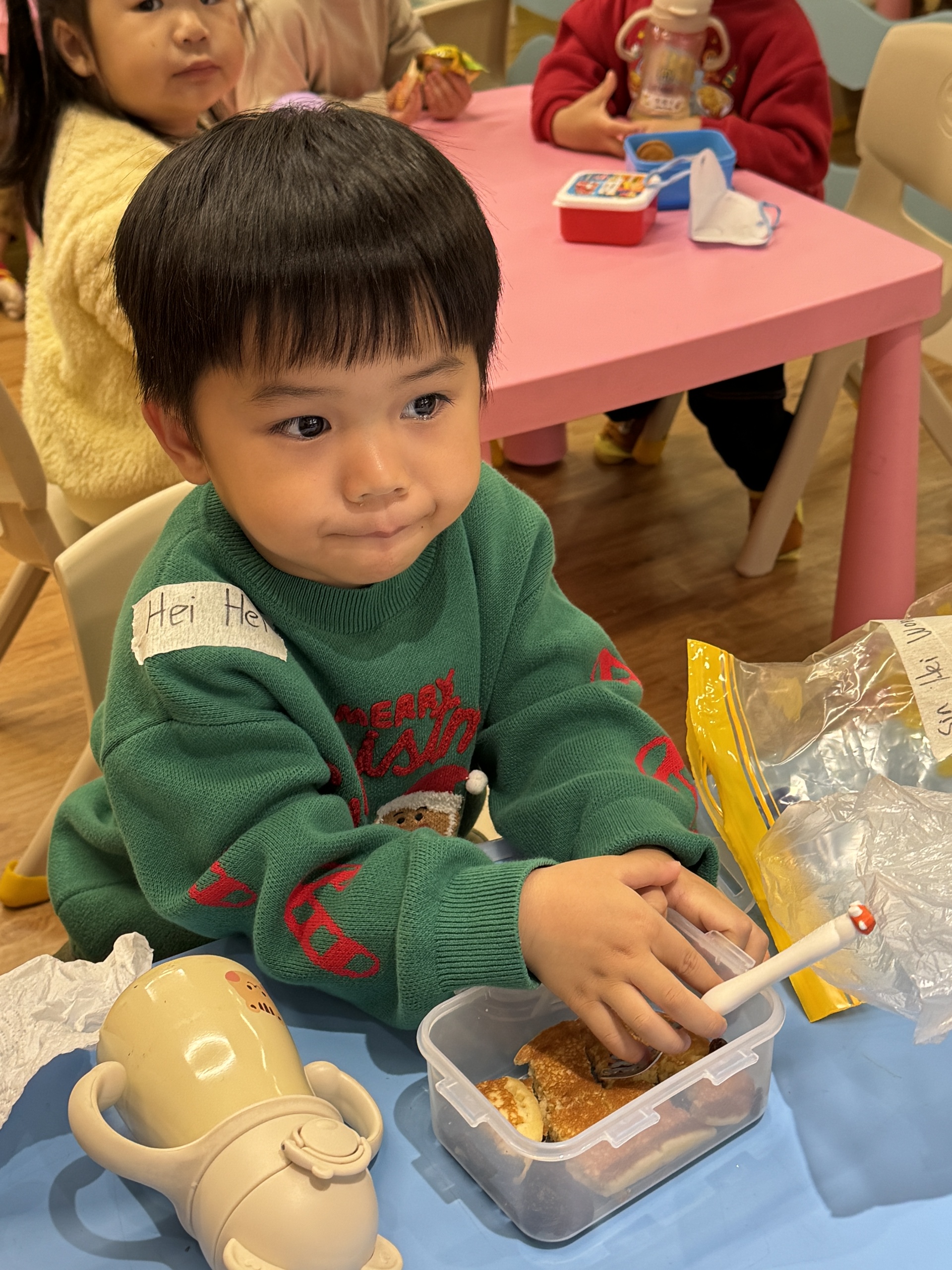 今天我們親手製作了聖誕老人的手工作品,在音樂呼啦圈的團體遊戲中跟著節奏歡笑奔跑,還一起用閃亮的裝飾點亮了屬於我們的聖誕樹。