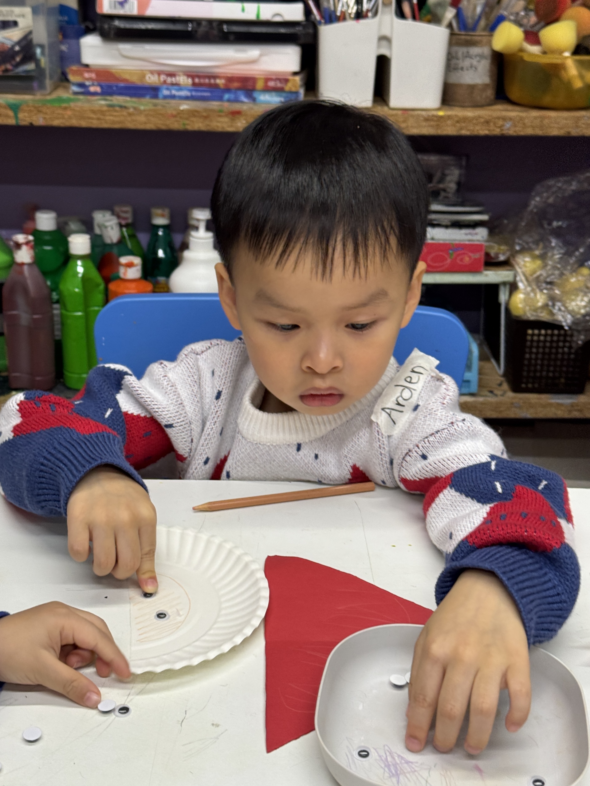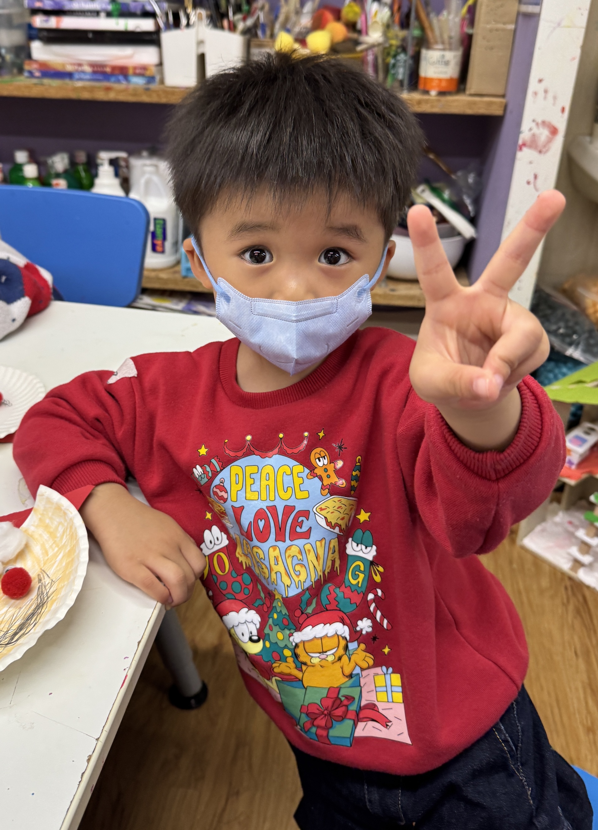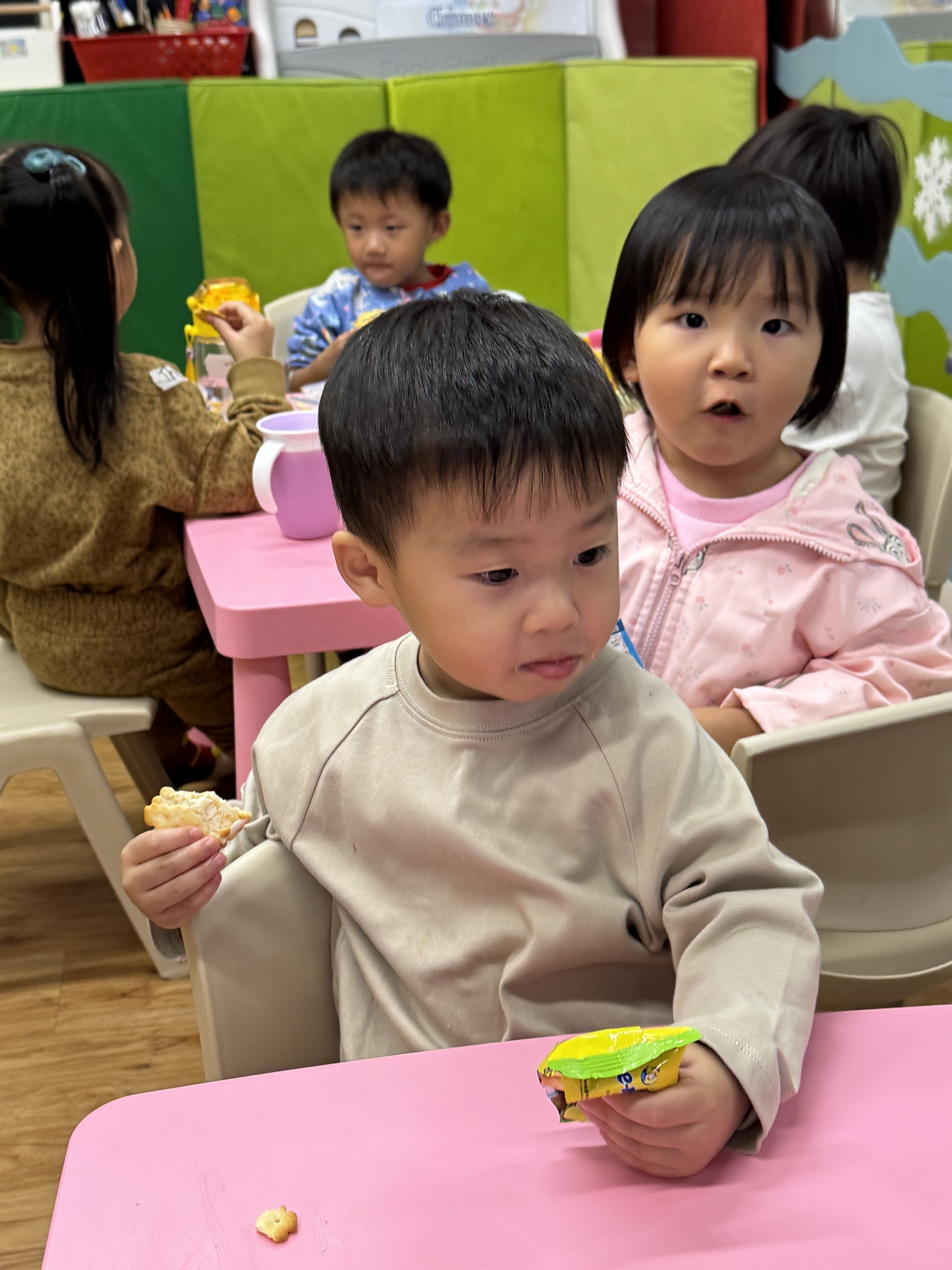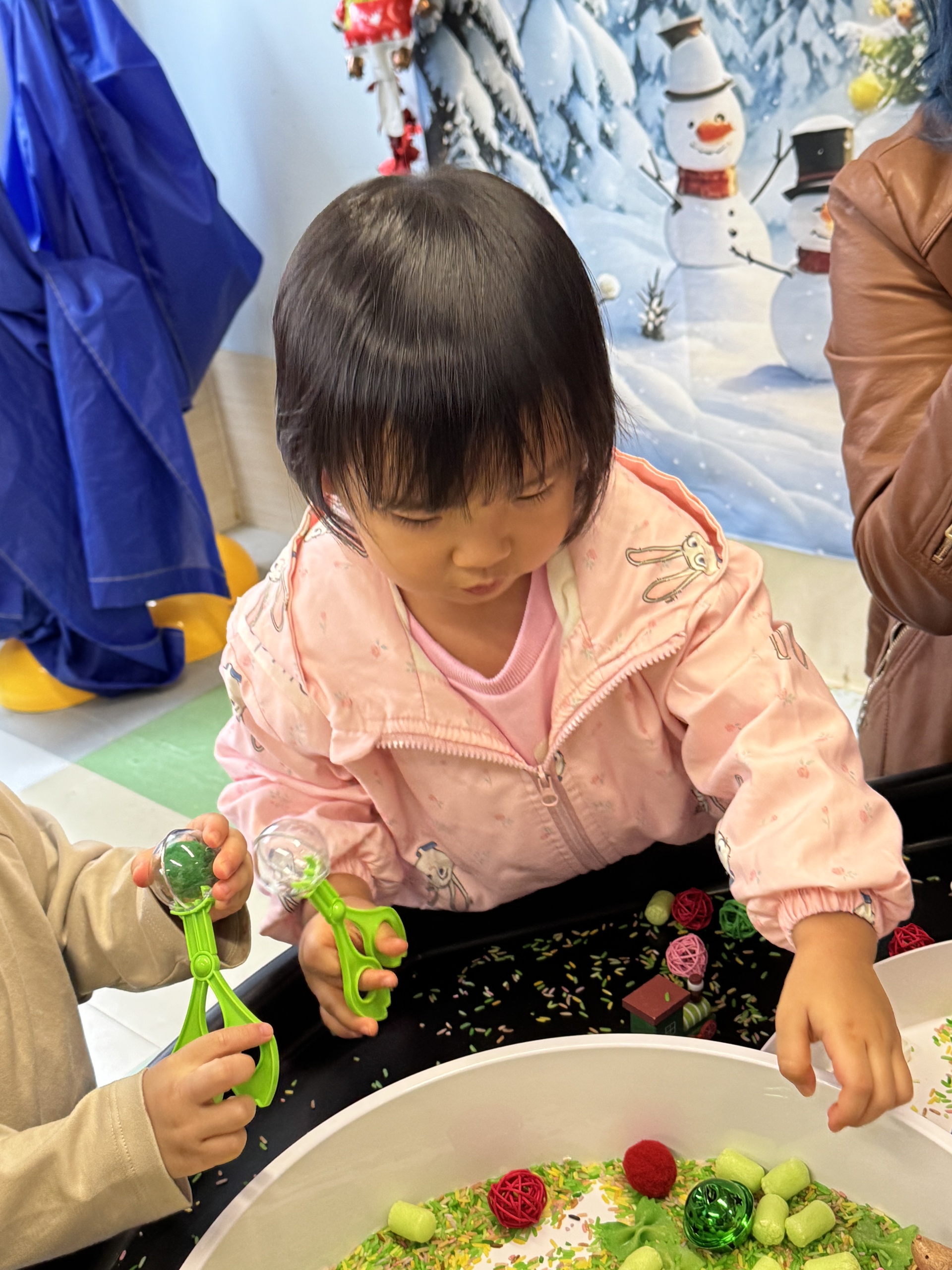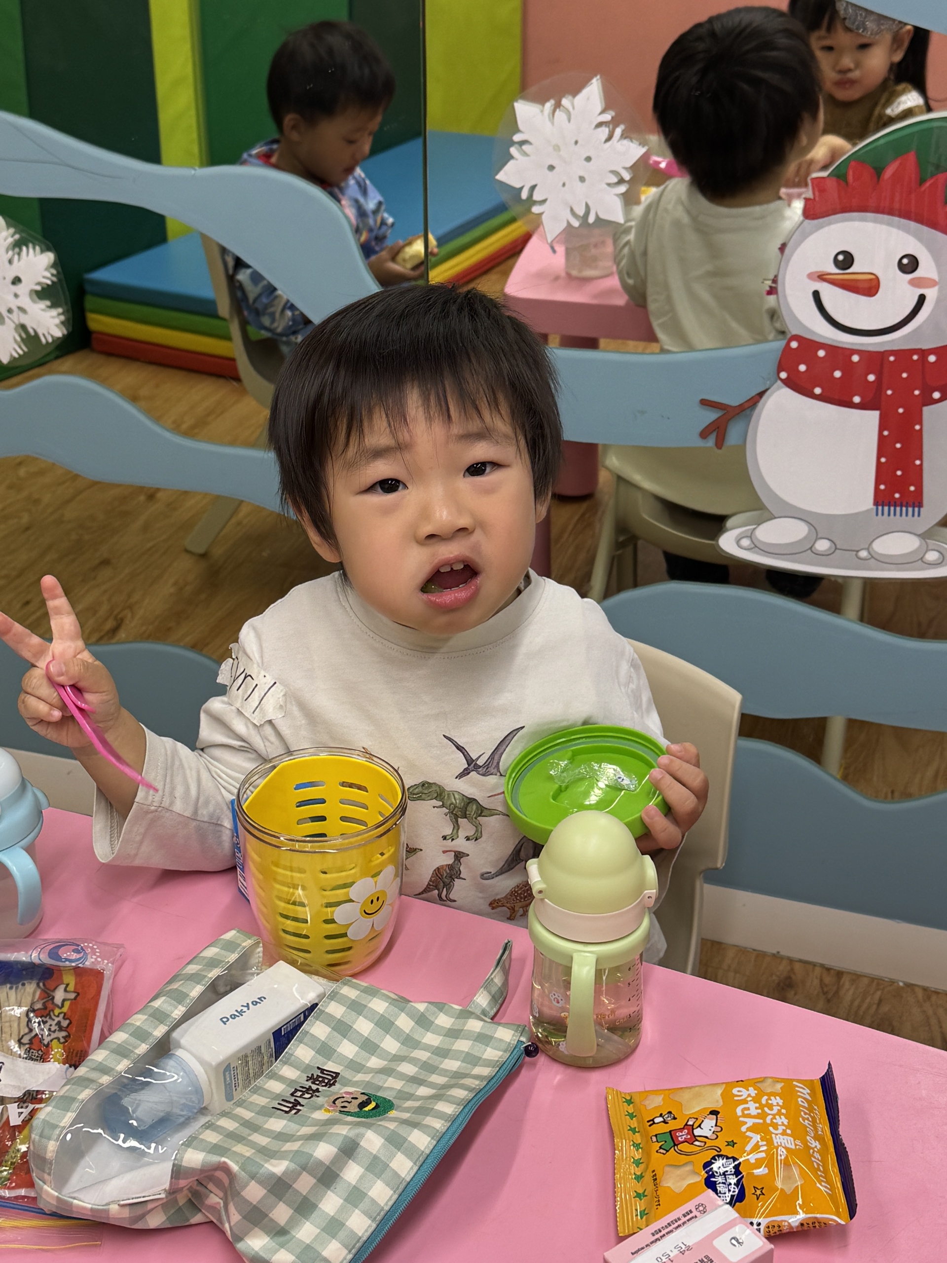 今天我們親手製作了聖誕老人的手工作品,在音樂呼啦圈的團體遊戲中跟著節奏歡笑奔跑,還一起用閃亮的裝飾點亮了屬於我們的聖誕樹。