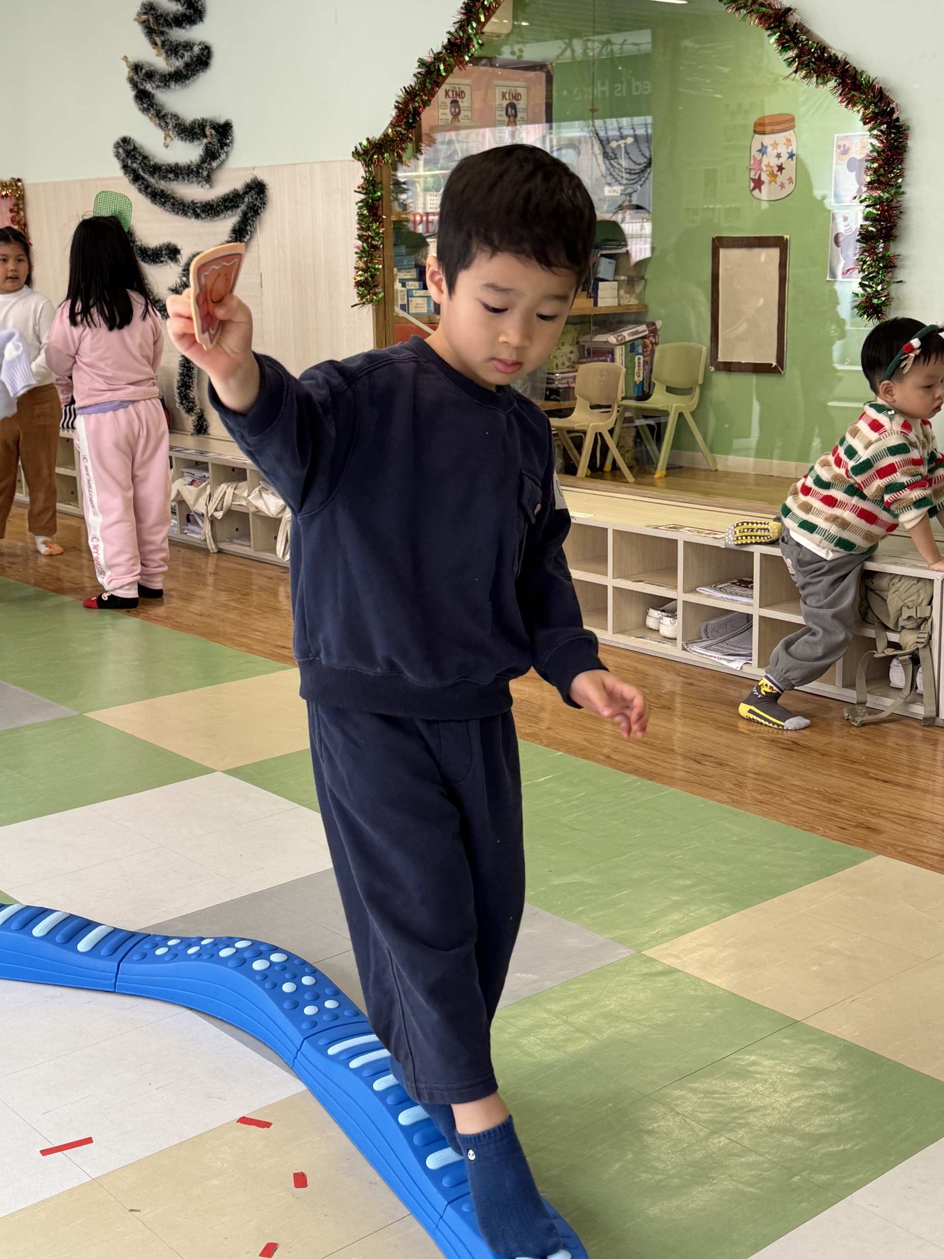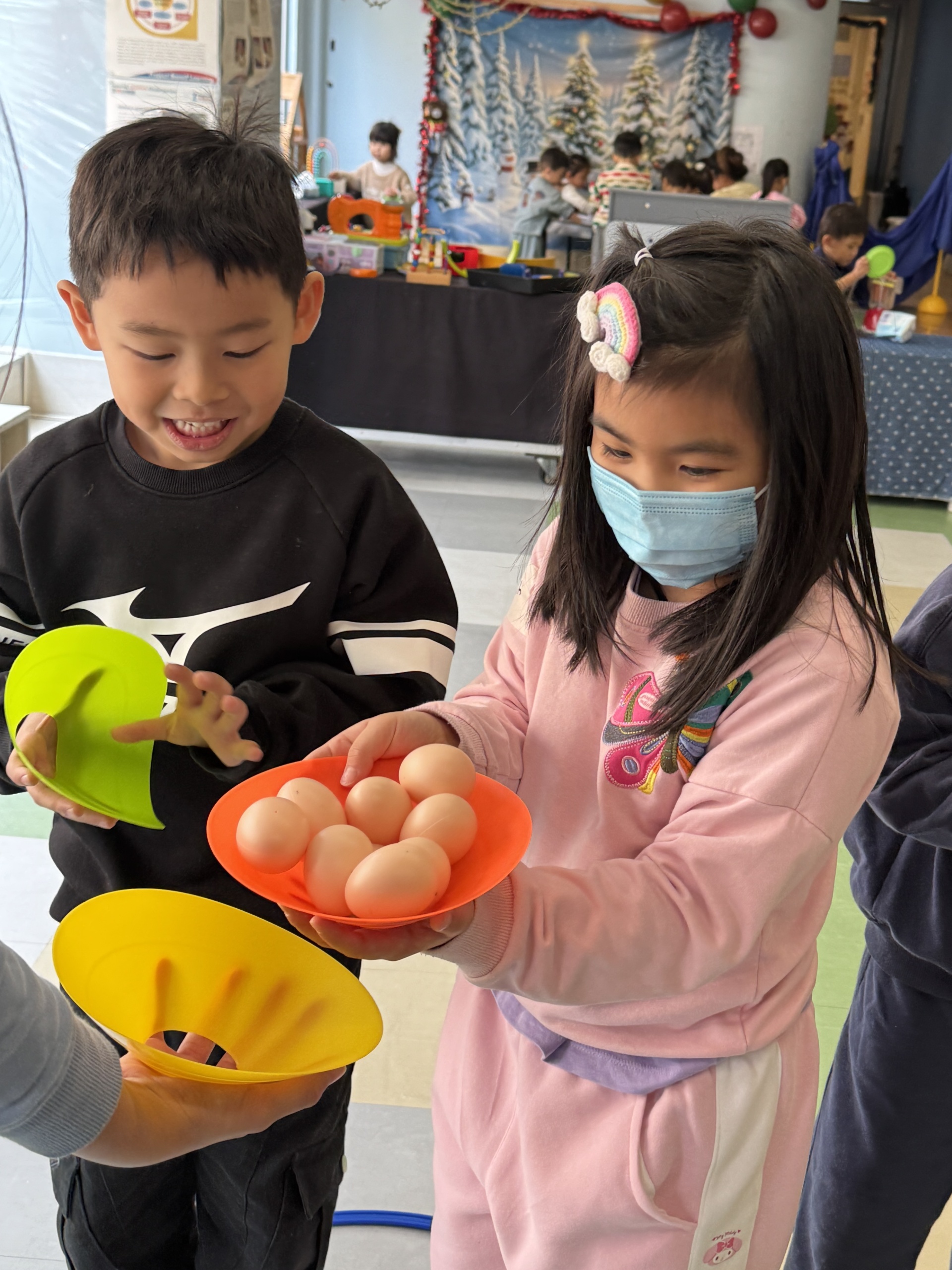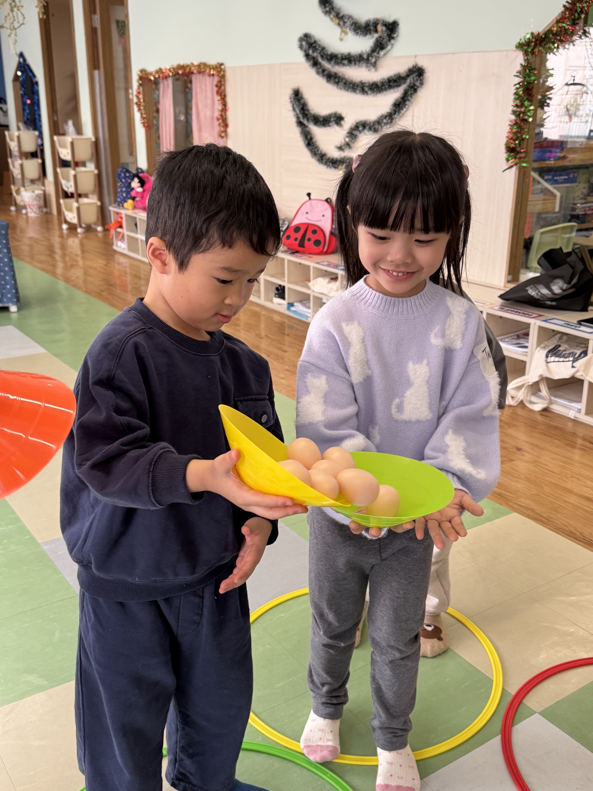 Today we crafted adorable gingerbread men with our hands, became “little couriers” to deliver gingerbread, and carefully passed eggs in a collaborative relay!