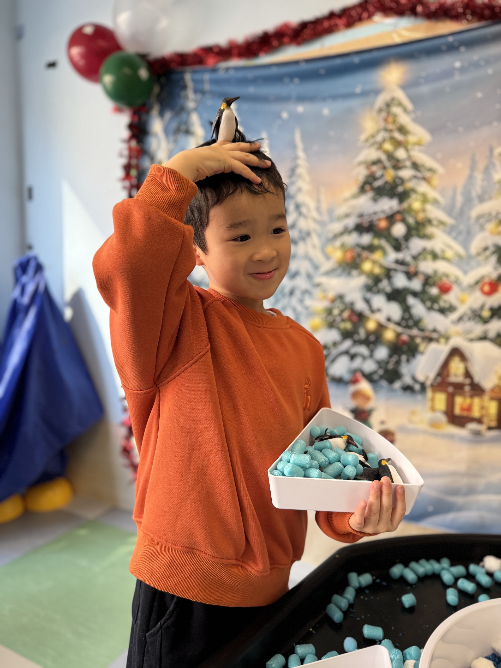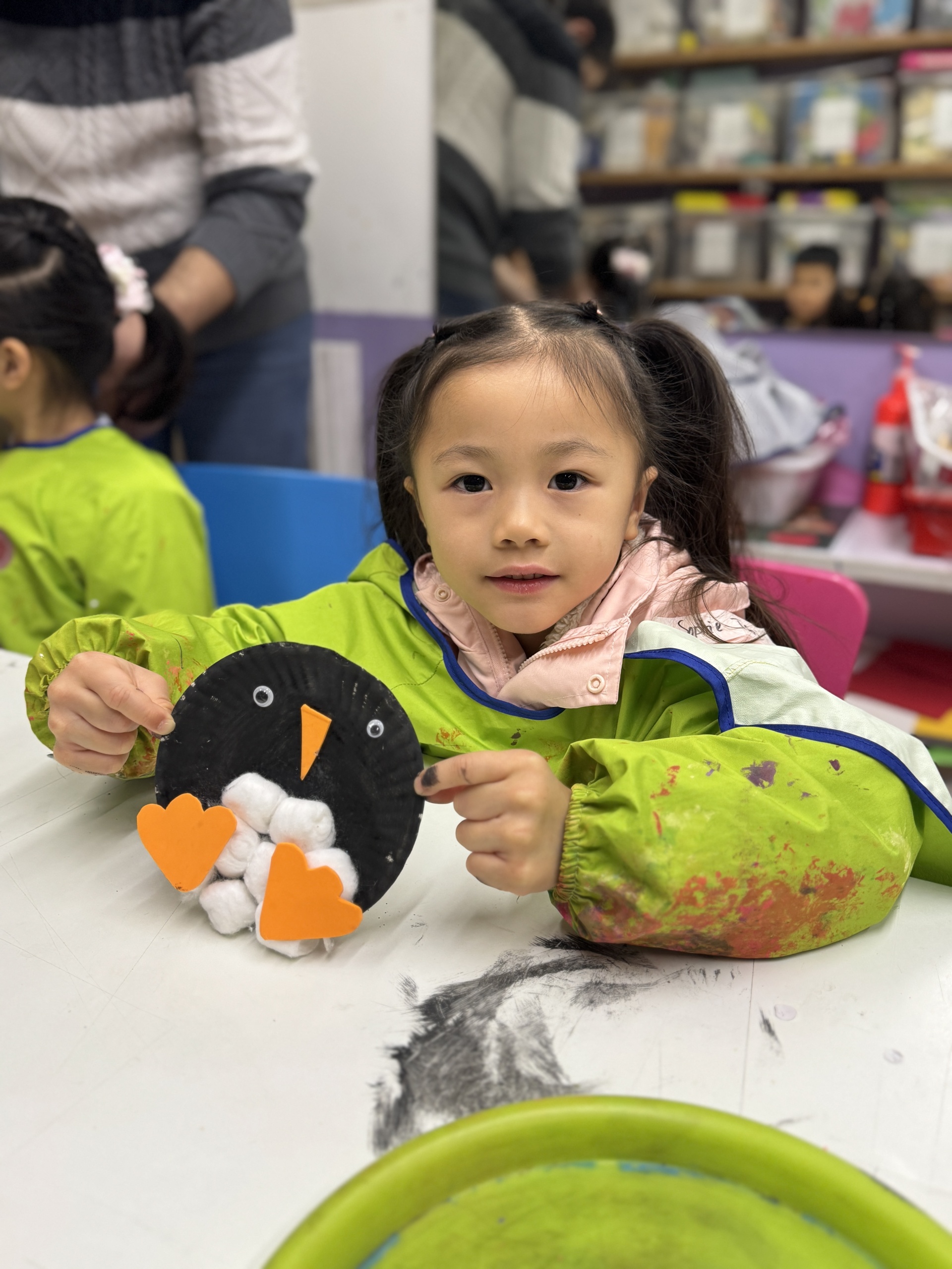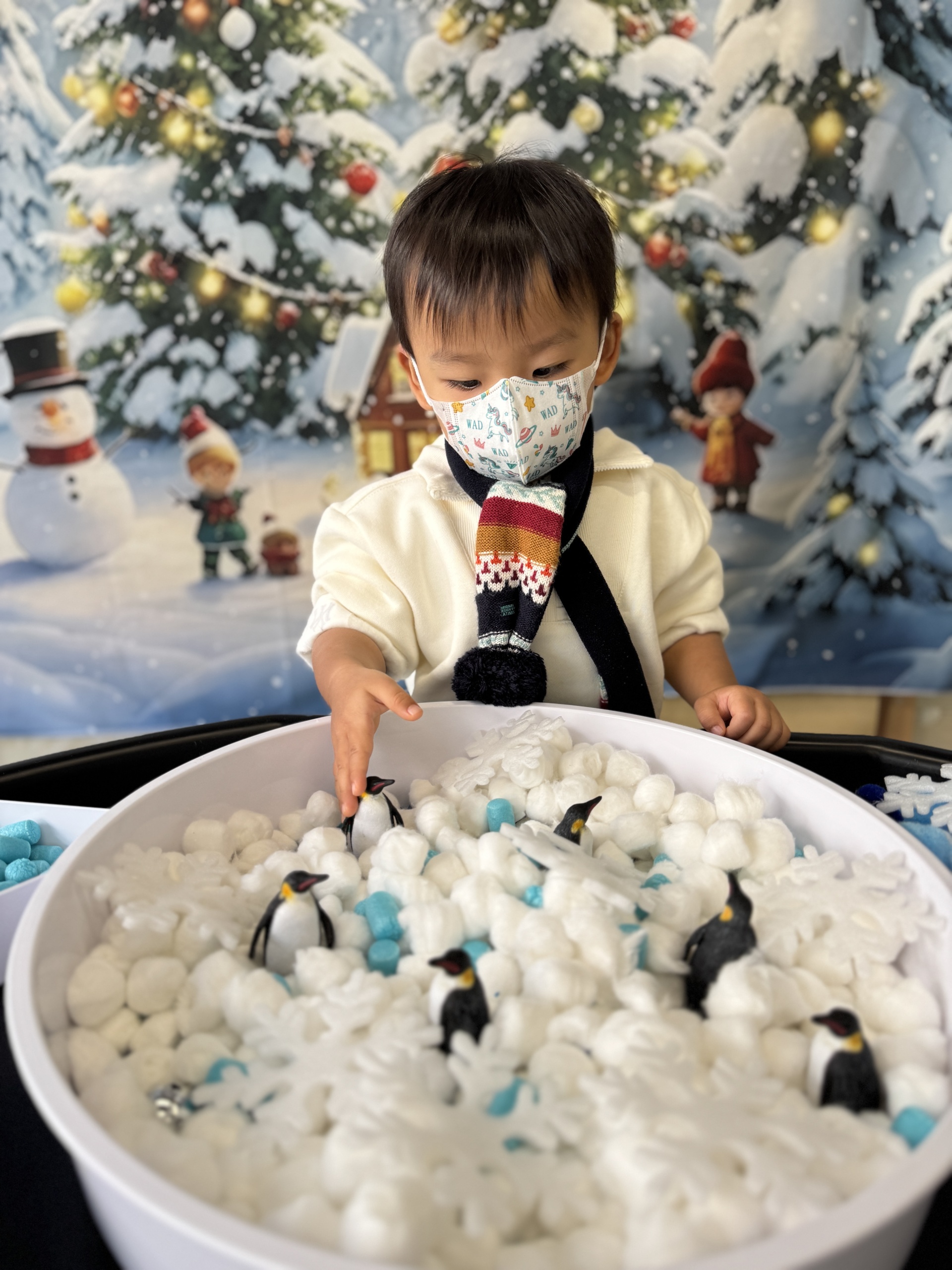今天, 我們一起揭開了冰雪世界,化身為 「極地小科學家」,先從認識北極食物鏈開始,接著在冰原上展開真正的挑戰!我們踏上「浮冰」,穩住平衡,合力釣起一條條「小魚」,親手餵養等待中的企鵝夥伴。我們亦利用紙碟,黑色顏料和棉花等材料製造出獨一無二的企鵝。