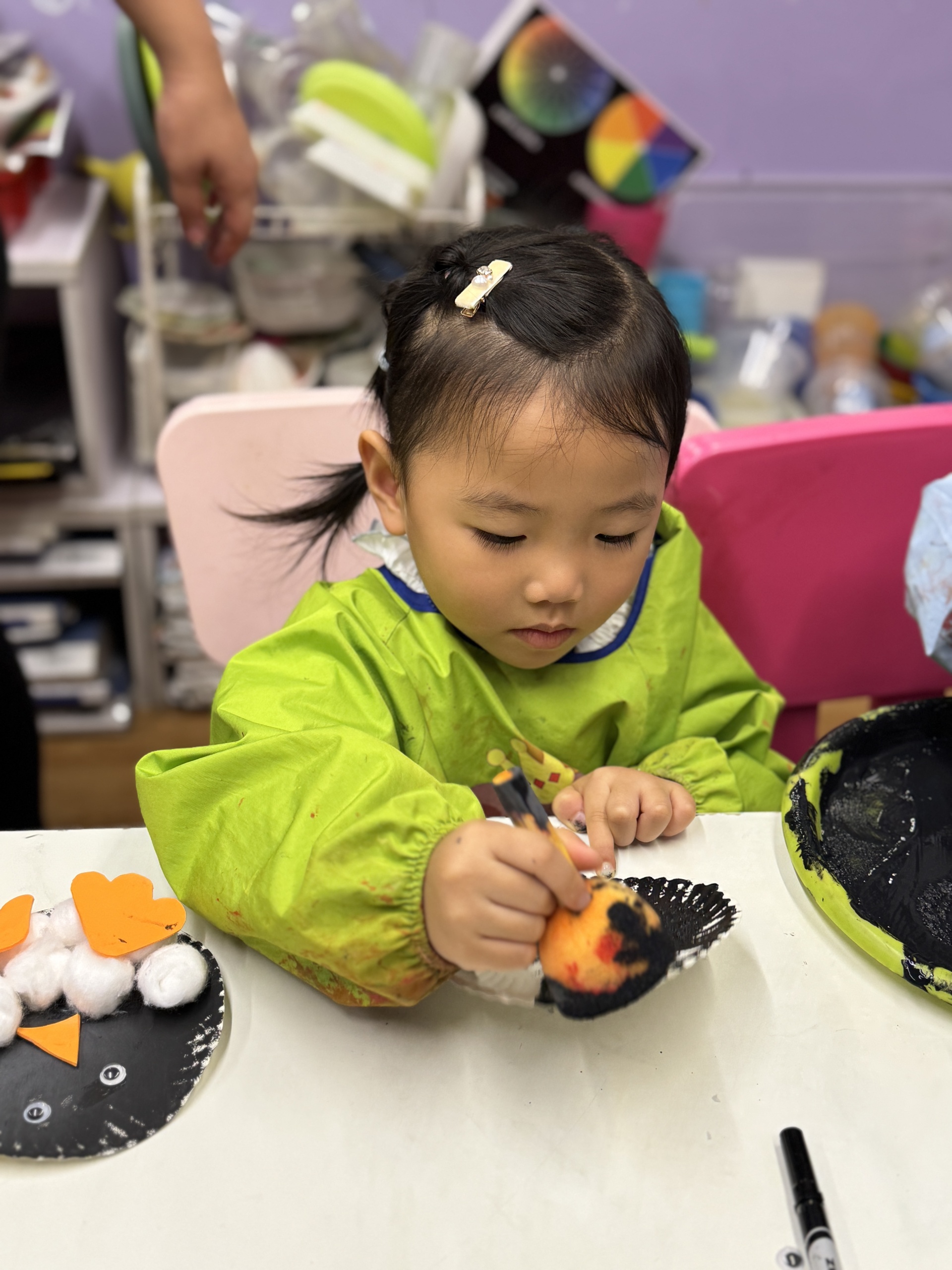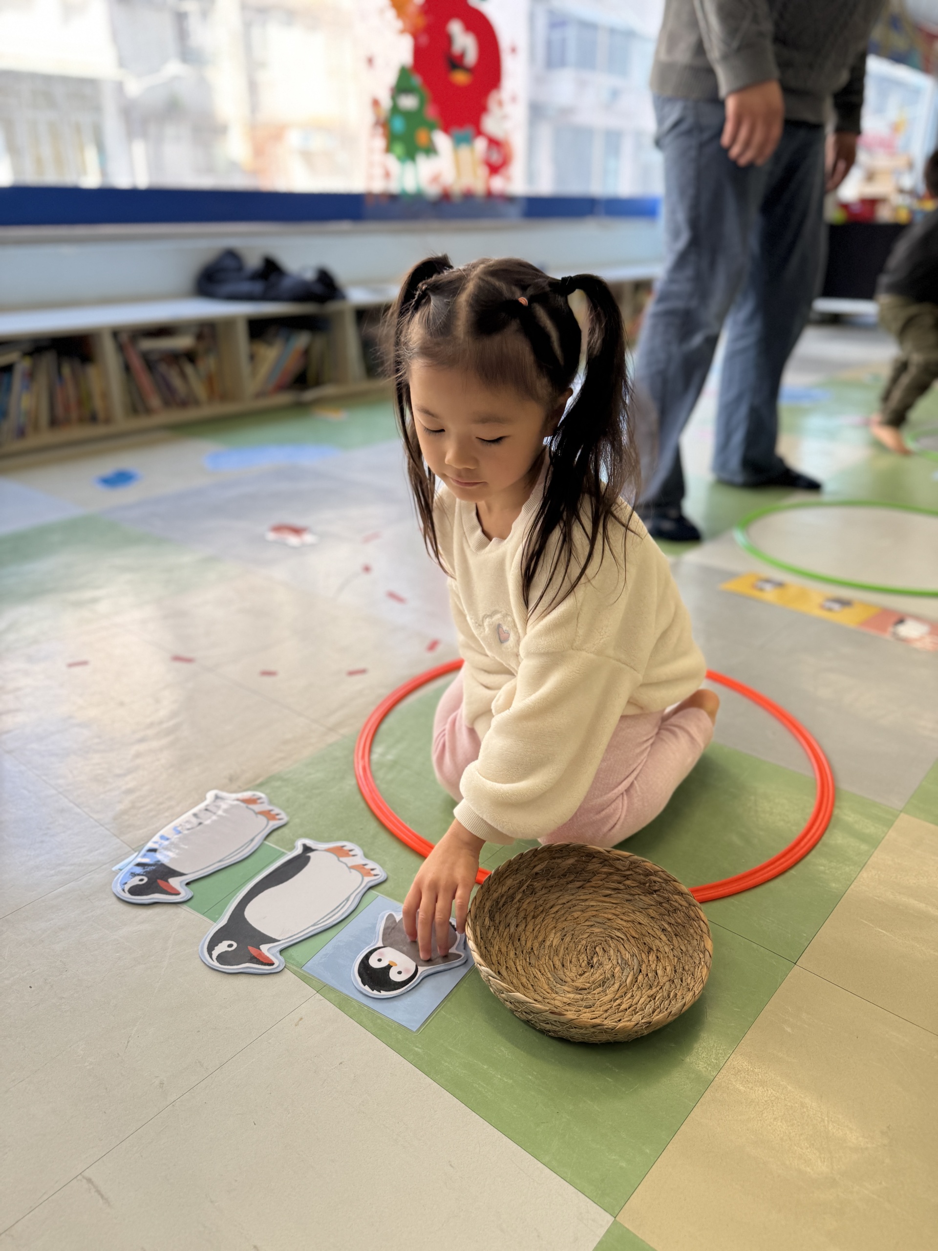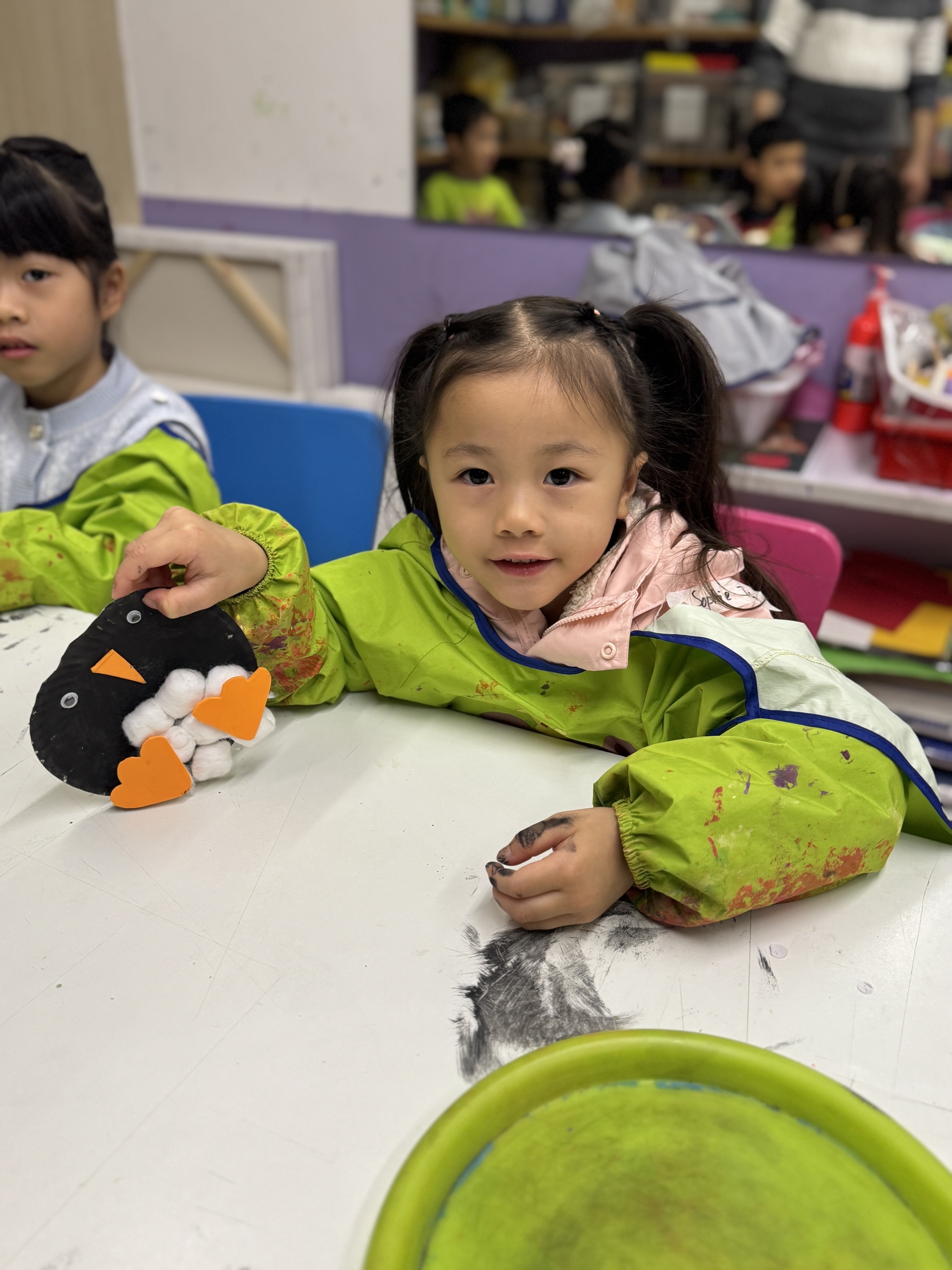 今天, 我們一起揭開了冰雪世界,化身為 「極地小科學家」,先從認識北極食物鏈開始,接著在冰原上展開真正的挑戰!我們踏上「浮冰」,穩住平衡,合力釣起一條條「小魚」,親手餵養等待中的企鵝夥伴。我們亦利用紙碟,黑色顏料和棉花等材料製造出獨一無二的企鵝。
