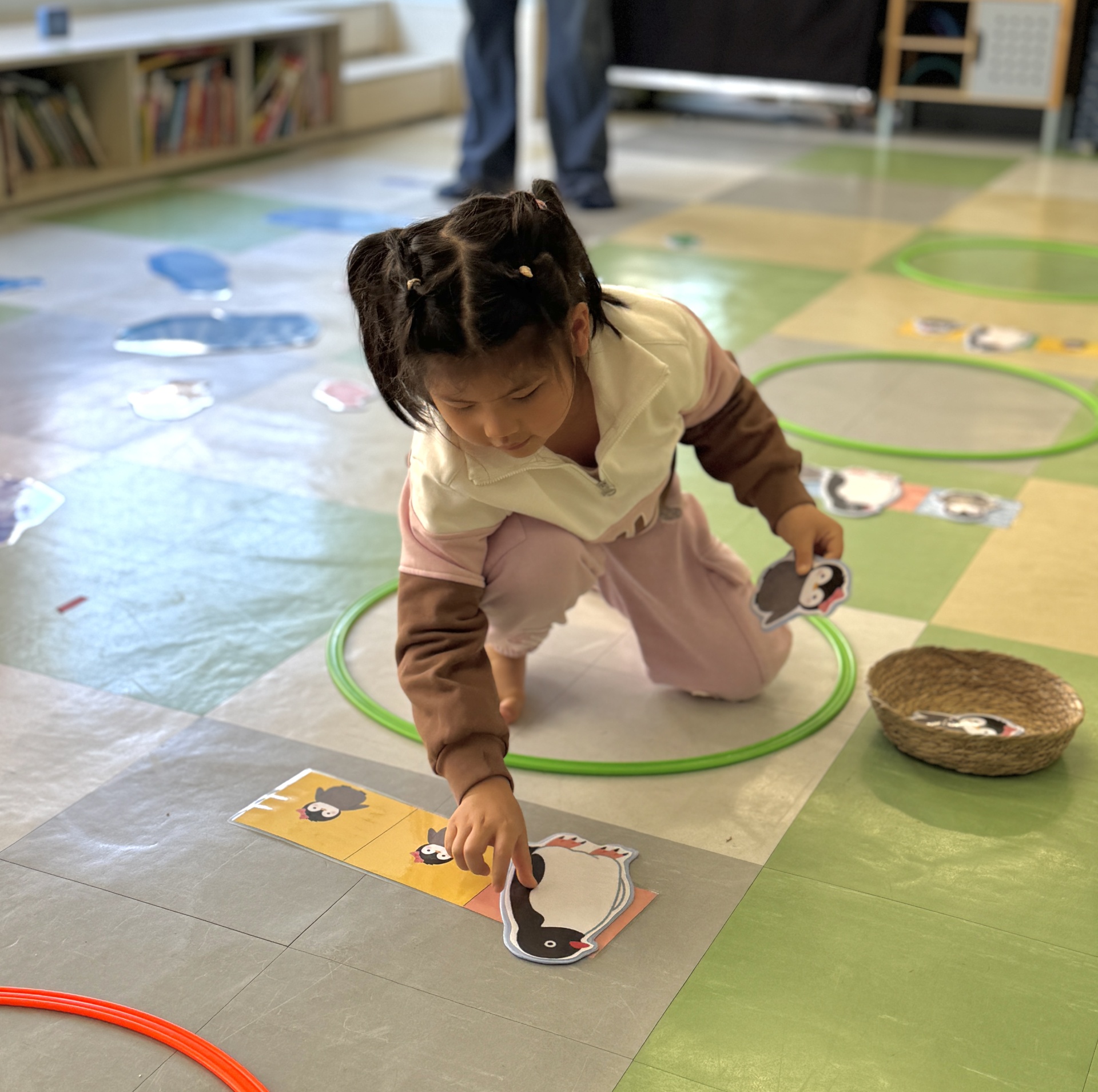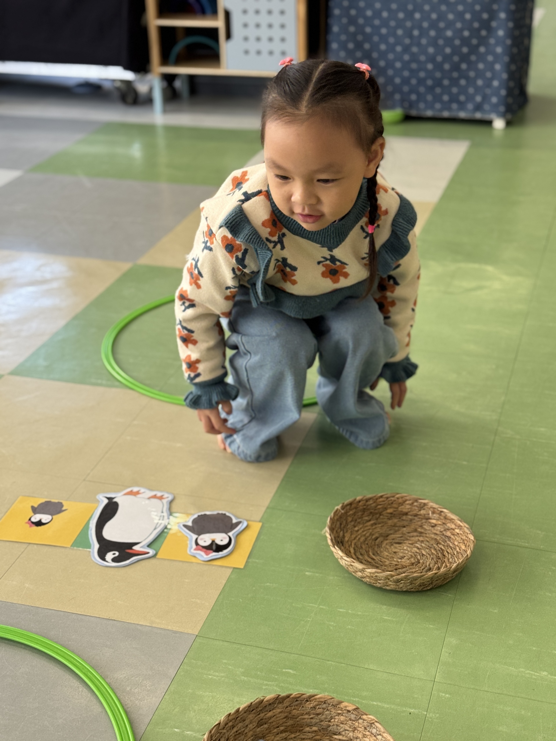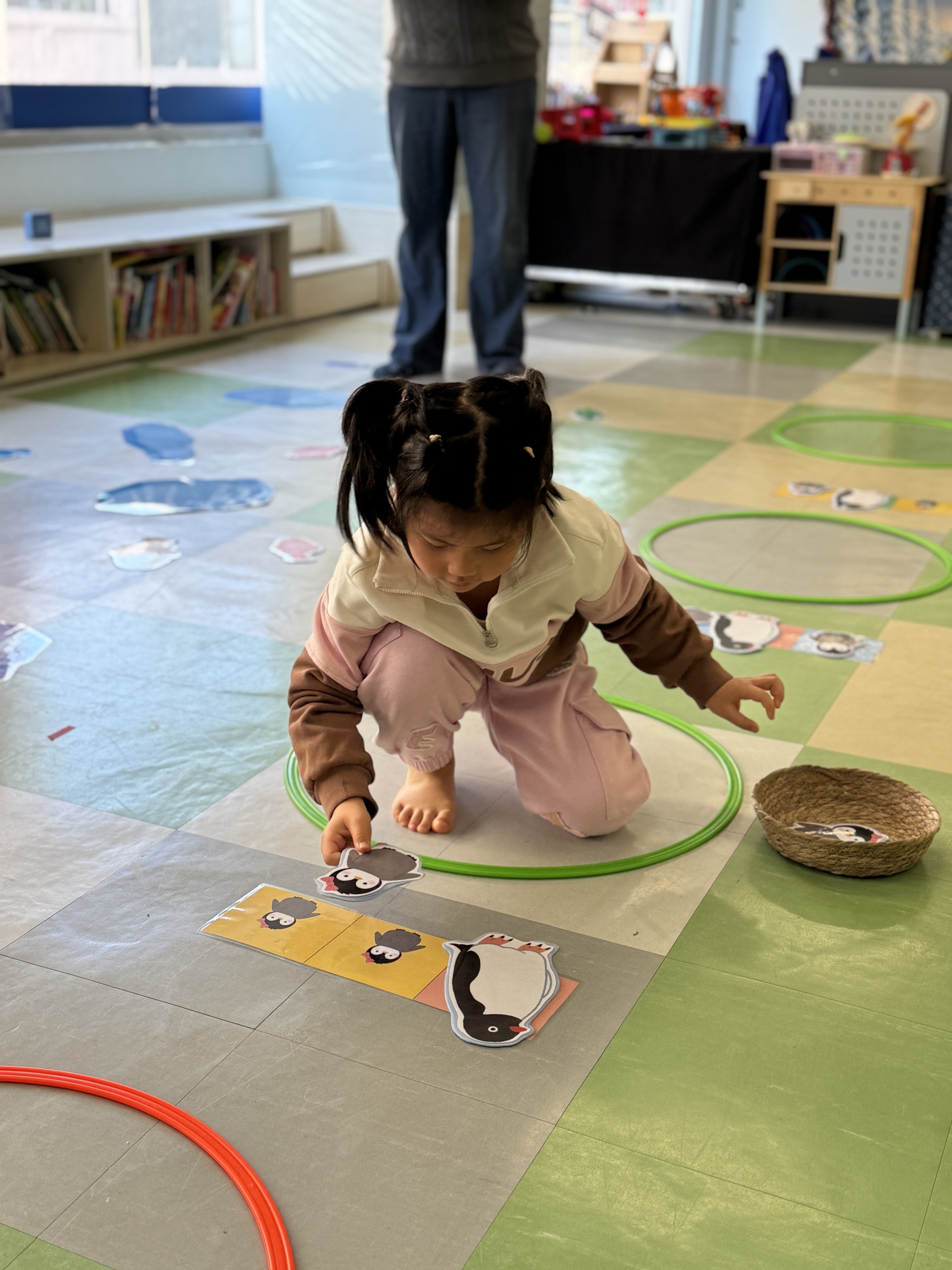 Today, we had an exciting Arctic adventure filled with learning, creativity, and teamwork. Our little explorers began their journey as polar scientists, discovering the Arctic food chain. The real adventure began on the icy seas! We carefully stepped from "iceberg" to "iceberg" as they "fished" for little fishes to feed their hungry penguin friends. Furthermore, we also used paper plates, black paint and cotton balls to make our own unique penguins.