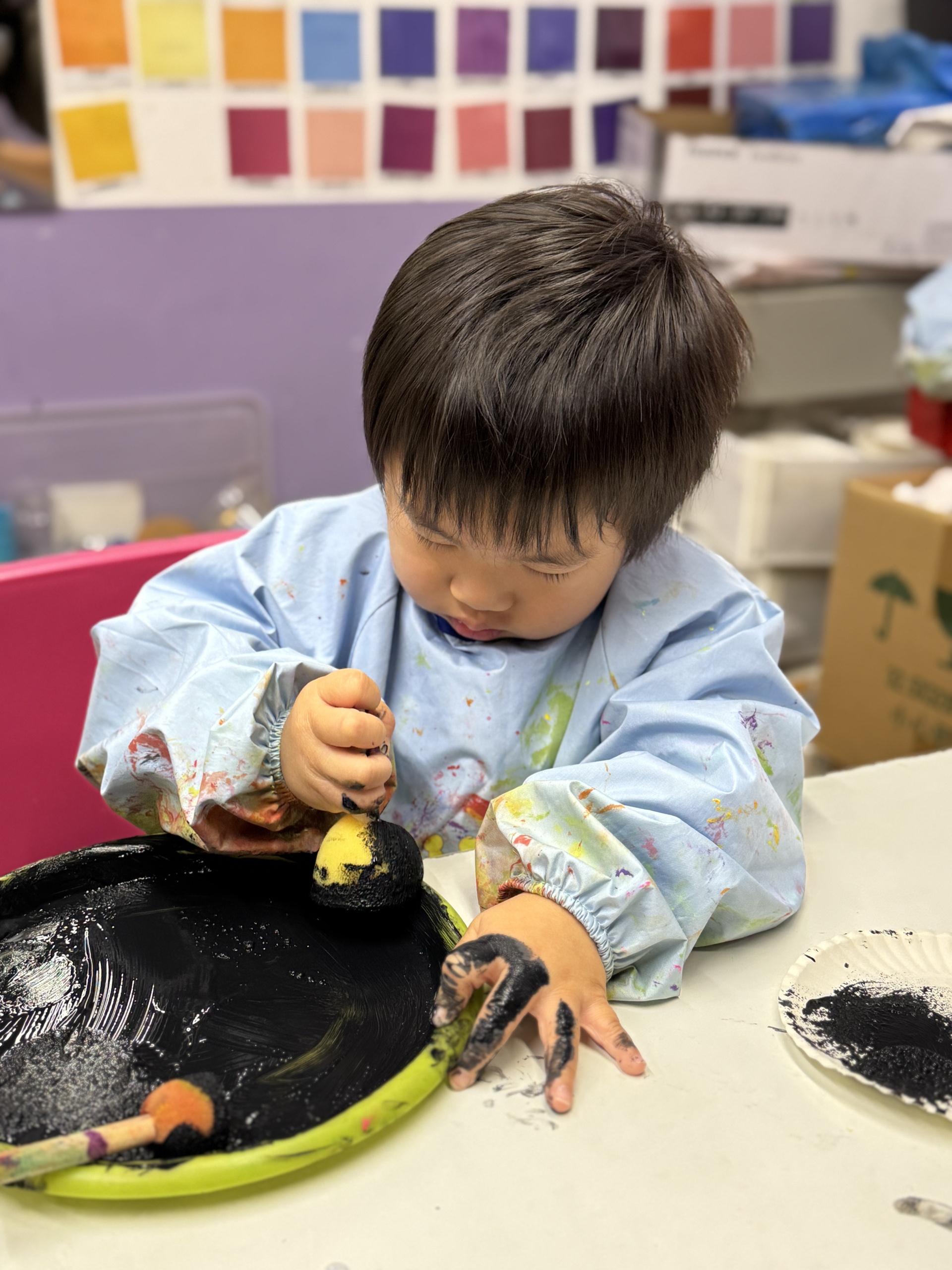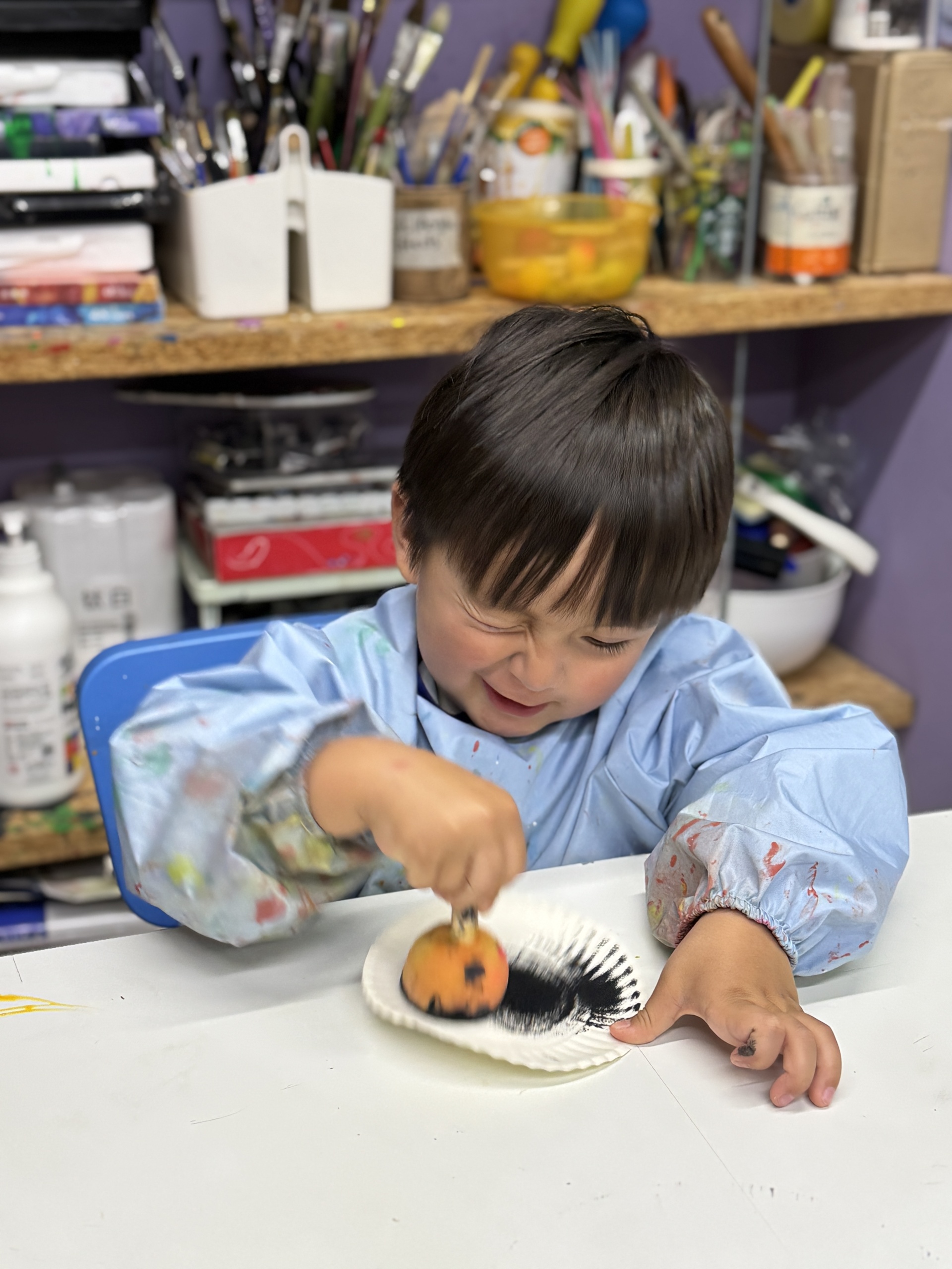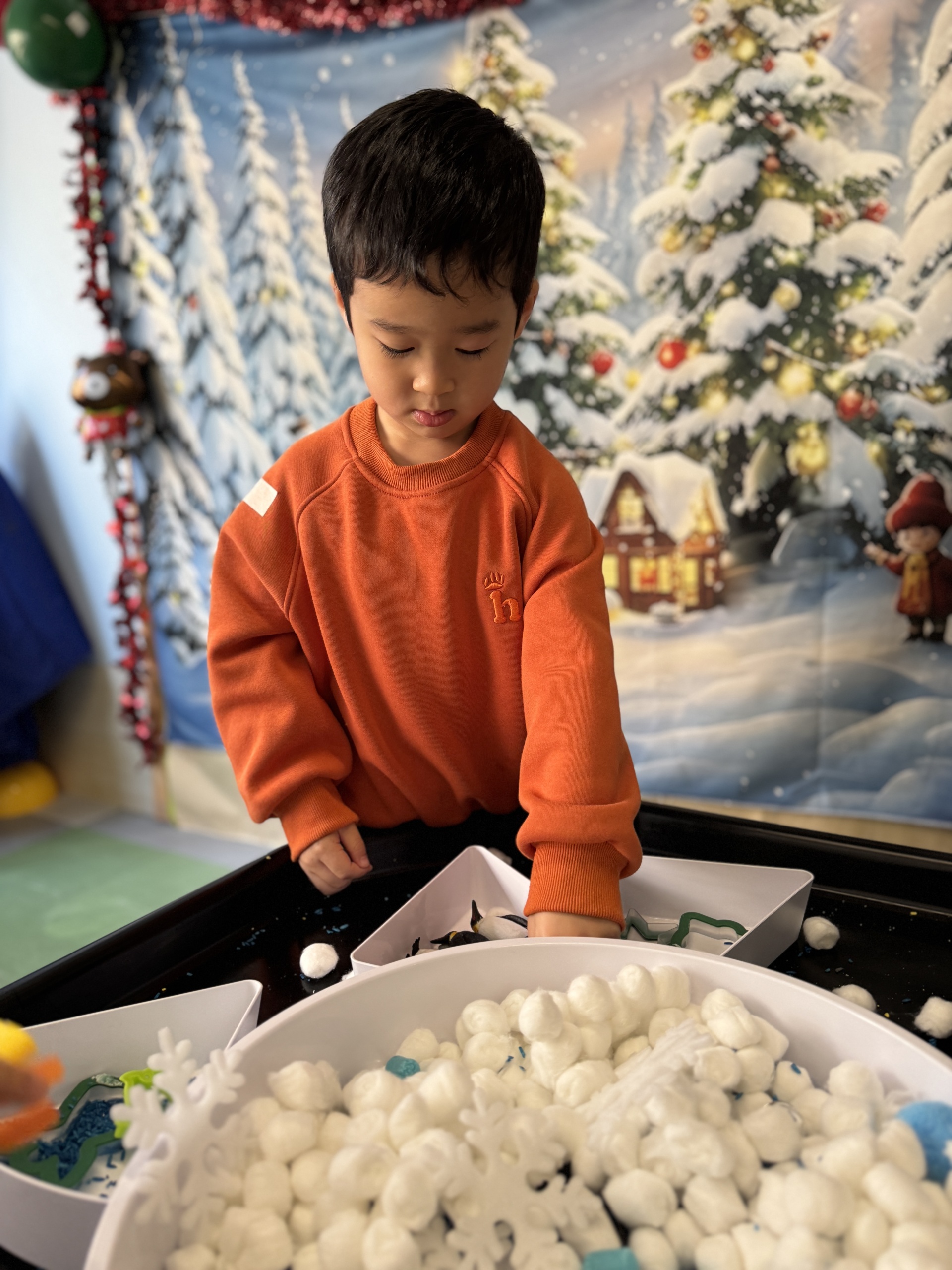 Today, we had an exciting Arctic adventure filled with learning, creativity, and teamwork. Our little explorers began their journey as polar scientists, discovering the Arctic food chain. The real adventure began on the icy seas! We carefully stepped from "iceberg" to "iceberg" as they "fished" for little fishes to feed their hungry penguin friends. Furthermore, we also used paper plates, black paint and cotton balls to make our own unique penguins.