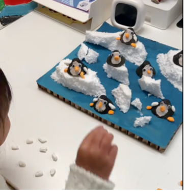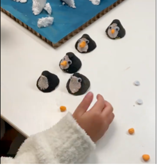 1. **Instructions (5 mins)**: Explain the activity to the children. Show them how to make penguins using either clay or egg carton. Show them the sample you prepared earlier as a reference.