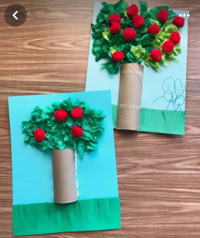 - Introduce the art project by showing a reference picture of the apple tree. Explain the different parts they will create: grass, trunk, leaves, and apples.