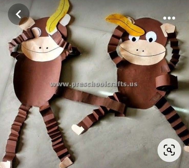 2. Monkey Assembly (20 mins): Walk the children through the steps of making their monkeys. Start with the body and head, then move on to folding the strips of paper for arms and legs. Attach the snout, ears, hands, and feet. If using google eyes, help them stick these on; if not, show them how to draw eyes with markers. Finally, guide them in drawing the nose and mouth.
